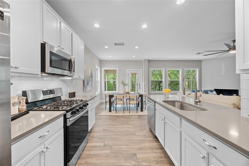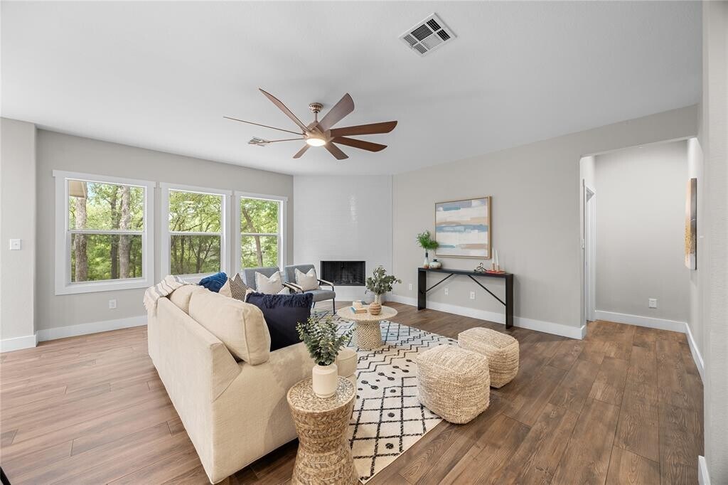 READY NOW. **First month 1/2 OFF** for qualified applicants. Beautifully upgraded, move-in ready home nestled in the highly sought-after Creeks at Round Rock neighborhood. Enjoy the peace of mind that comes with a one-way-in, one-way-out neighborhood. Residents here also love the hidden gem of a neighborhood trail and park where Brushy Creek meets Lake Creek — perfect for nature walks and quiet reflection. This home is a rare find — it backs *directly onto the Lake Creek greenbelt, offering treed views. Step into this LOADED Morrison Homes build and be instantly drawn to the breathtaking greenbelt views from the moment you enter the foyer. Highlights of this spacious floor plan include: 4 bedrooms - 3.5 bathrooms - Enclosed main-floor office. Two dining areas & a large main-floor living room featuring a custom-tiled wood-burning fireplace. Open-concept kitchen with updated cabinetry, quartz countertops, stainless steel appliances, recessed lighting, and an oversized pantry. The main-floor primary suite has an upgraded bay window overlooking the greenbelt; updated primary bathroom with dual vanities, separate shower, garden tub, and large walk-in closet. Hard tile, wood-look flooring throughout the entire main level. Upstairs, the smart design continues: three secondary bedrooms, *two FULL bathrooms and *two spacious living areas. - > One secondary bedroom has an en-suite bathroom. The two large living spaces make great media room, playroom, or second home office. Additional features & updates: Oversized, separate laundry room and abundant storage throughout. Oversized two-car garage, flat driveway, and charming covered front porch. New roof [August 2025], new exterior paint [August 2025]. Updated water heater and a two-zone HVAC system. Other improvements include doors, baseboards, crown molding, and plumbing & light fixtures. This home offers a rare combination of space, upgrades, and a peaceful, premium greenbelt lot! Also Listed For Sale #5806120.