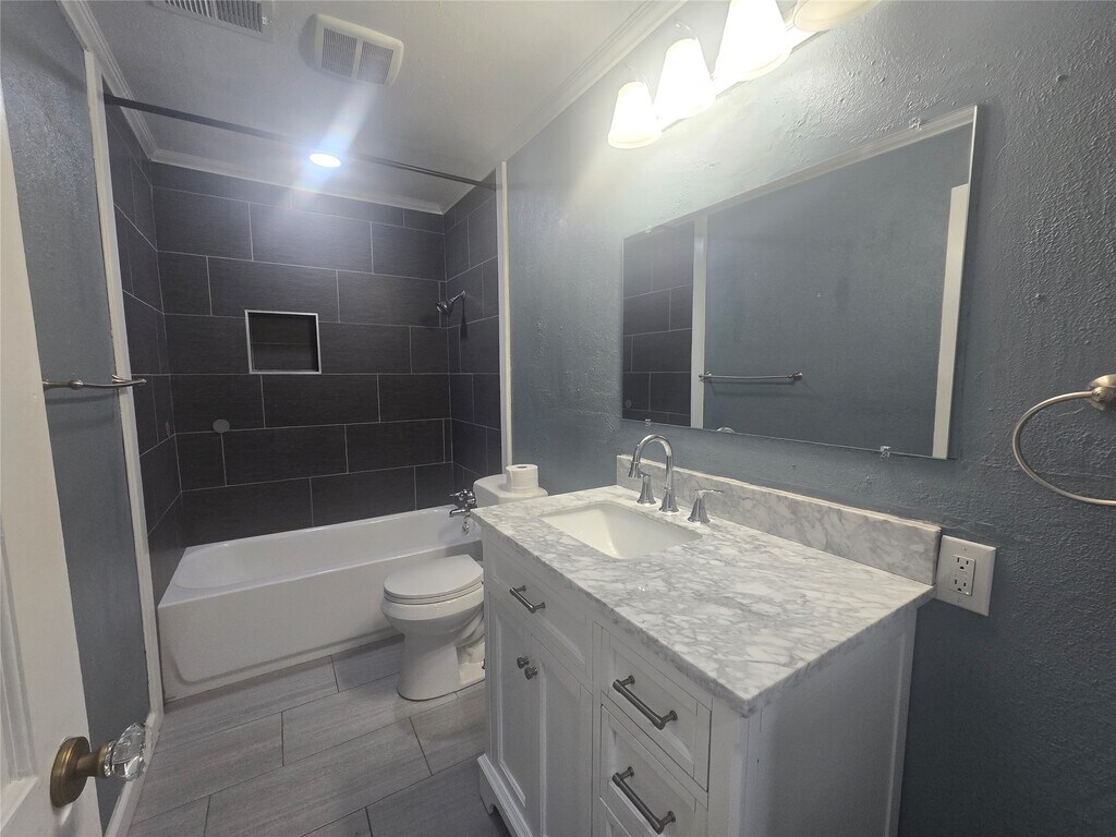 This 2/1/1 offers easy access to the Gulf Freeway and has numerous recent upgrades. Features include a new roof,new subfloor,new plumbing,new countertops,new lighting throughout,and new kitchen appliances. The bathroom includes a built-in shower,and the home has central air and heat. Outside,you’ll find French drains in the yard,a spacious backyard with a porch,and plenty of shade in the front. The home also includes a sunroom,good-sized closets,and washer/dryer connections in the garage. MLS# 88705307