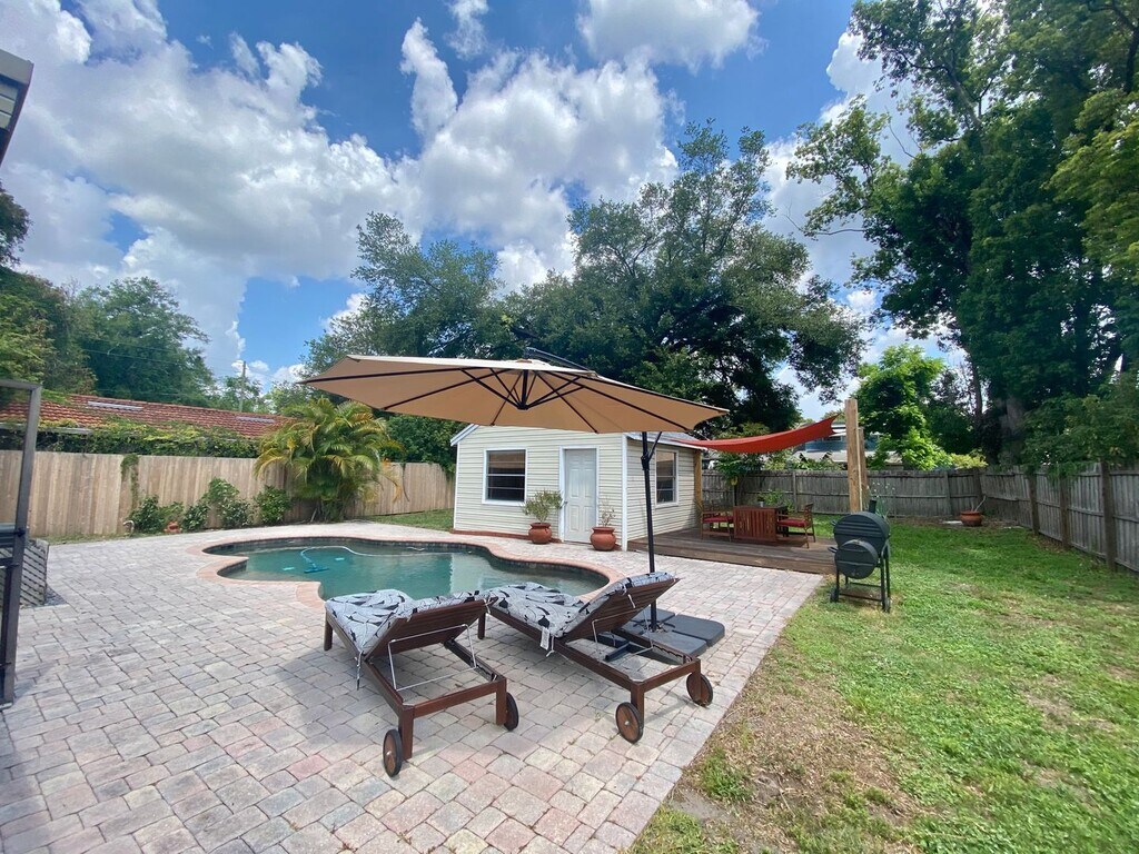Nestled in the heart of Conway, this exquisite Bungalow pool home boasts a captivating open floor plan, accentuated by a spacious living and dining area. The fully remodeled kitchen is a culinary haven with stainless steel appliances, a charming butcher's block countertop, and a farmhouse-style sink. Discover an additional versatile space with a fireplace that can be adapted as a bonus room, office, or formal dining area. The expansive master bedroom is flooded with natural light and offers a walk-in closet. Step outside to the fully fenced backyard, featuring a covered porch with upgraded flooring and an inviting pool area—perfect for entertaining. Enjoy the convenience of being within walking distance of the Conway Chain of Lakes public boat ramp and Gatlin Recreational Center. This home also provides proximity to restaurants, shopping, ORMC Hospital, and just a 10-minute drive to Downtown Orlando. Pool service and lawn care are included, and renters insurance is required. Available starting May 5th.