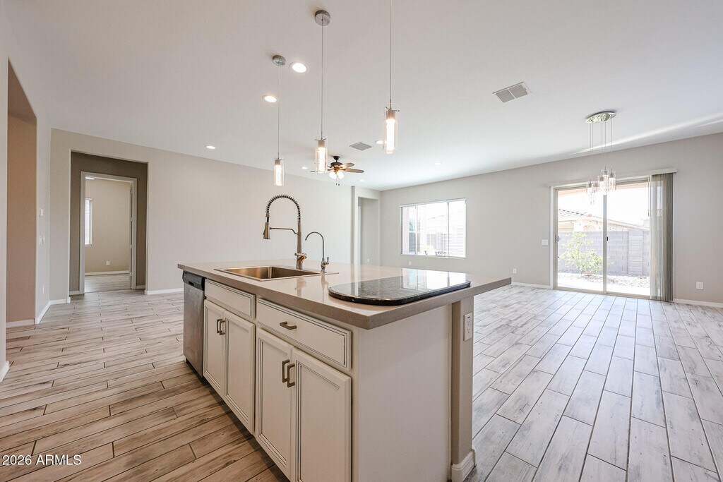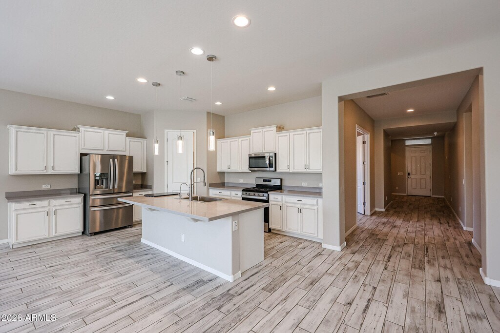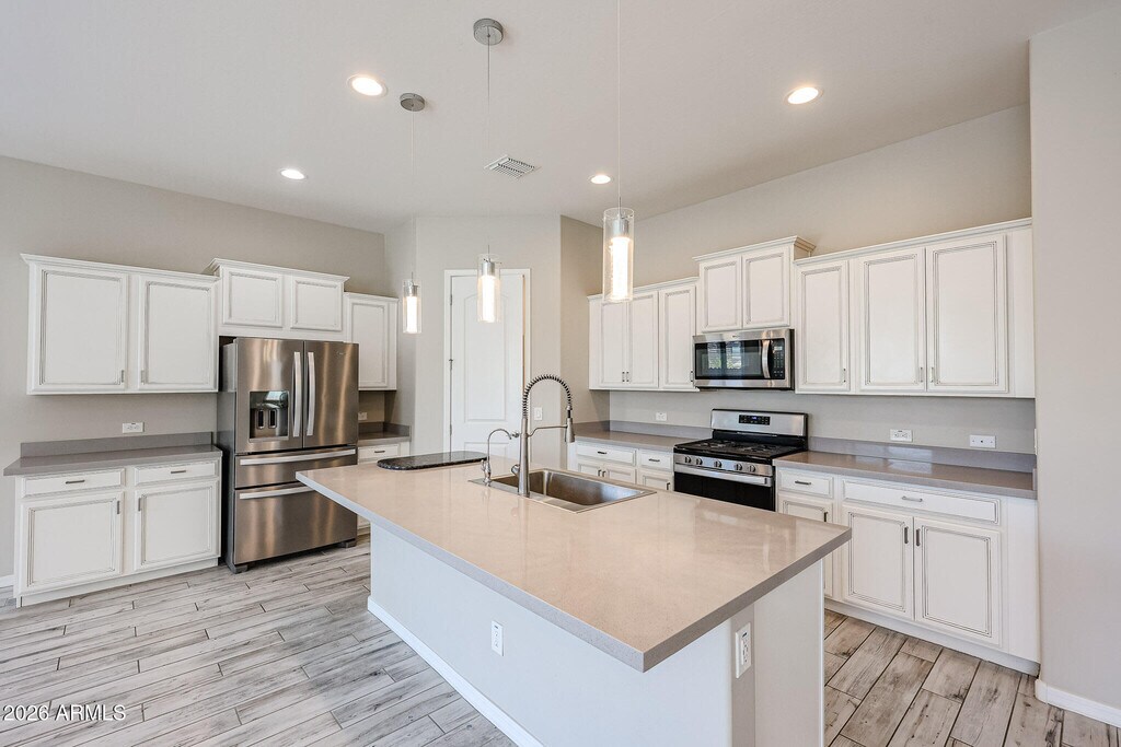 Beautiful Single Story Home in Popular Community! Bright,Sharp,Clean! Well-maintained and highly upgraded home,Built in 2020,It looks like a new home. 4 bedrooms and 3 bath with a den/office,Each bedroom has a walk-in closet. Open Floor Plan,Wood-like Tiles and Upgraded Laminates,No Carpet,2-Tone Paint,Quartz Countertops,Upgraded Cabinets,SS Appliances,Water filter system,Refrigerator,Washer/Dryer are included,Huge Great Room,LED Recessed Lights,Ceiling Fans,Surround System,Spacious Master bedroom with Bath,Private Toilet with Bidet,Separate Shower and Tub,3-Car Tandem Garage,Epoxy flooring,Water Softener,Patio furniture with BBQ grill in backyard will stay. Convenient location,Close to everywhere,schools,freeways,shopping centers,etc. Ready to move into!