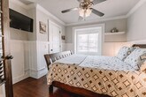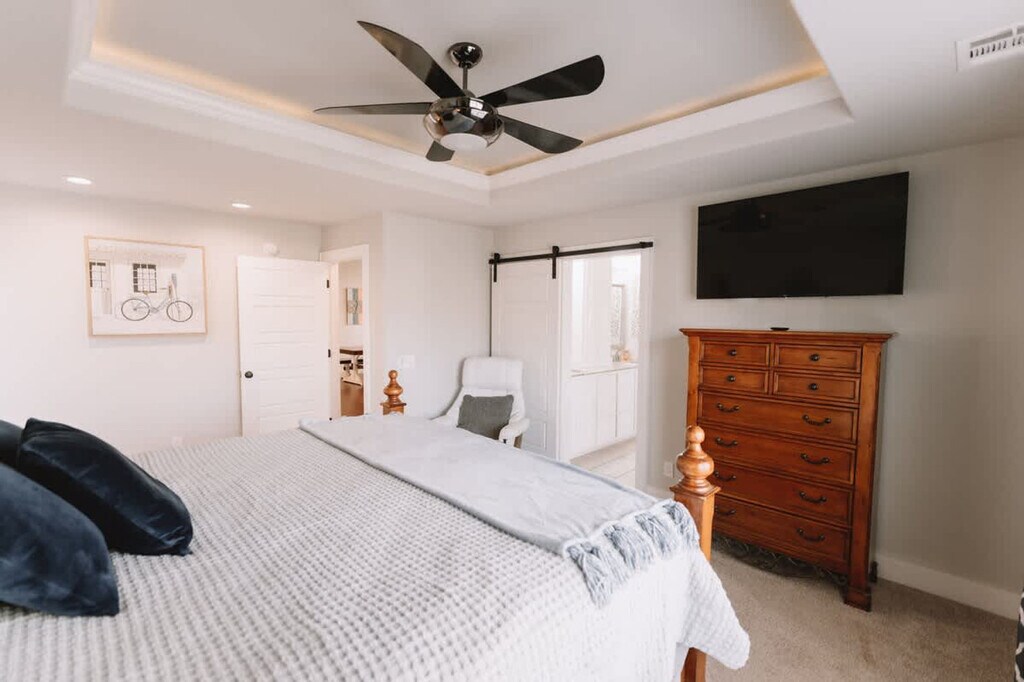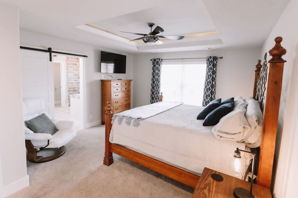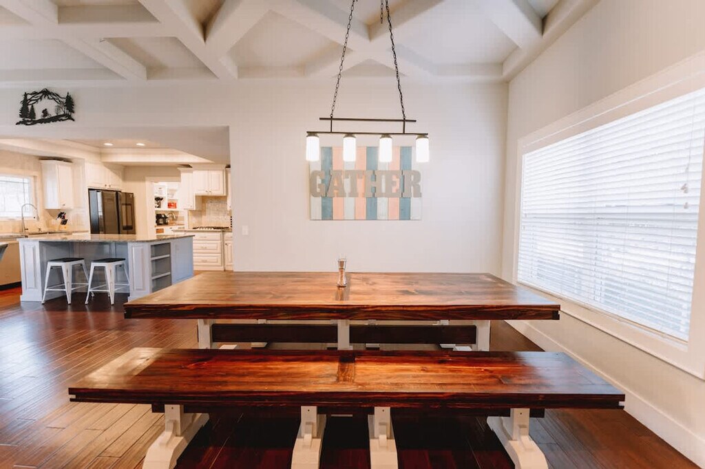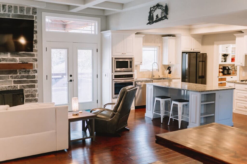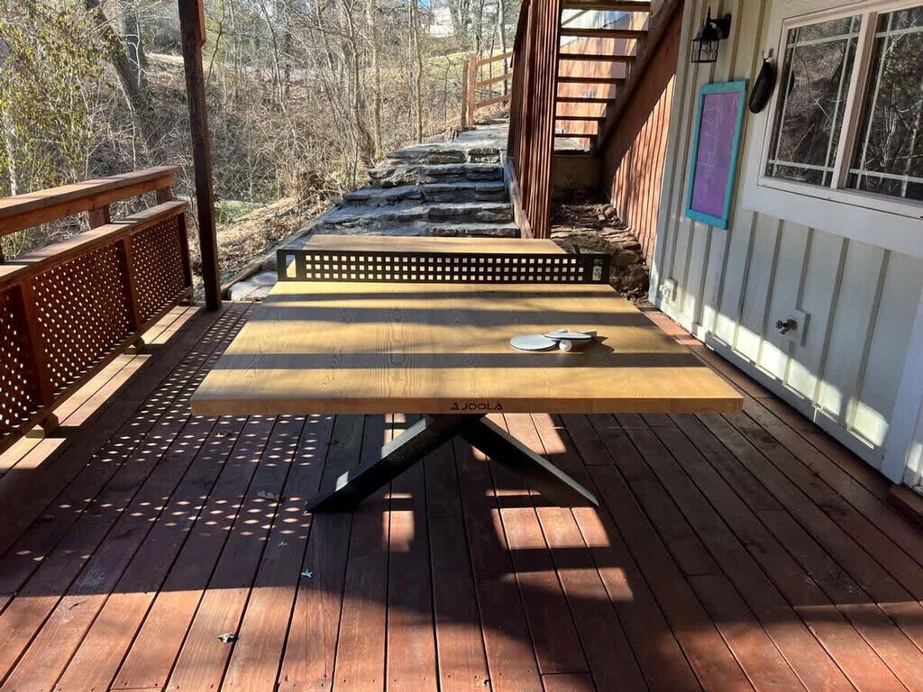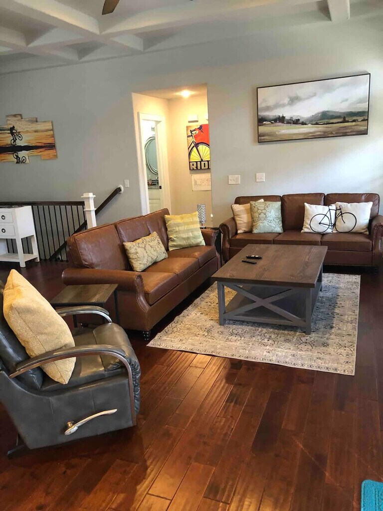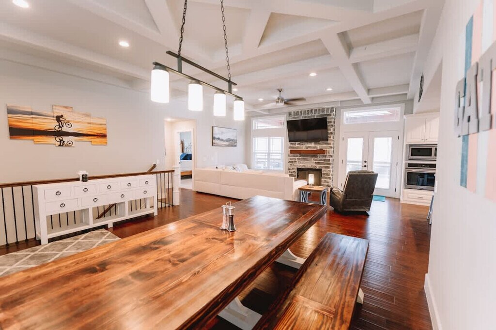 Feel at home in this huge Bentonville home that can fit the whole family. Located along the Tristan and Action Alley MTB trail, this home is stocked with amenities bikers will love. This home features a decked-out patio with a dining table, grill, smart TV, fireplace, cozy seating, and a ping pong table, as well as a large game room with a poker table, kitchenette, and additional living space. The modern, fully stocked kitchen has the essentials you'll need to create your favorite meals. There is also a washer and dryer for guest use. Relax in the hot tub, enjoy a meal or movie outside on the deck, play a round of poker in the game room, or ping pong outside, or just spend quality time with the whole group in our large living and dining spaces. Secure bike storage is available in the garage. Two pack 'n plays and two highchairs are available. This property is pet-friendly with a fee of $90 per dog, with a maximum of 3 dogs allowed. Located along the Tristan and Action Alley MTB trail, this home is 0.7 miles to Bentonville Bike Playground, 3 miles to Downtown Bentonville & Crystal Bridges, and 4 miles to The Momentary & 8th Street Market. It's also a 2-mile ride via Tristan MTB trail to the Slaughter Pen Hollow trailhead. Bentonville is home to Northwest Arkansas' premier mountain bike trails, restaurants, and museums. Walk, drive, or easily ride your bike to access all the amenities downtown Bentonville has to offer! Parties or guest actions that result in disturbances, property damage, extensive extra cleaning, or smoking indoors will incur a fine of $1,000. Dogs discovered at the property without prior notice or cats discovered at the property will incur a fine of $400. Unauthorized checkout delays will incur a fine of $100 per hour. If you smoke in the home, you will be fined $1,000 plus the cost of any smoke remediation necessary. Quiet hours are observed between 10:00 PM and 10:00 AM. Check-in is any time after 3:00 PM. [SI]