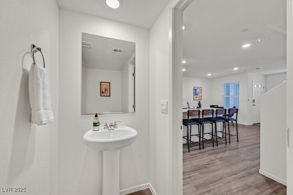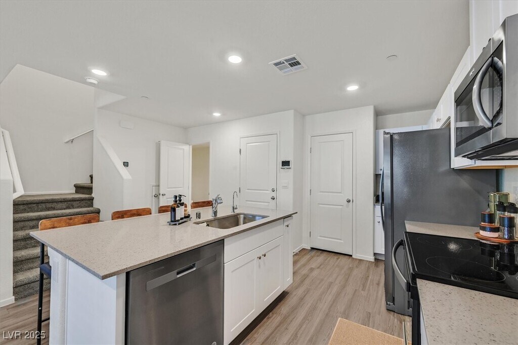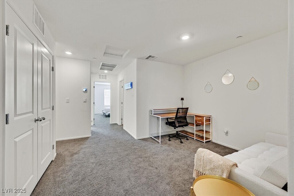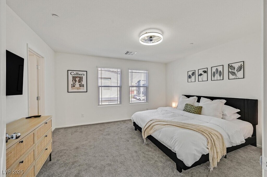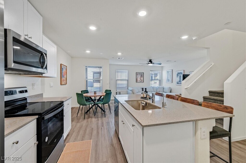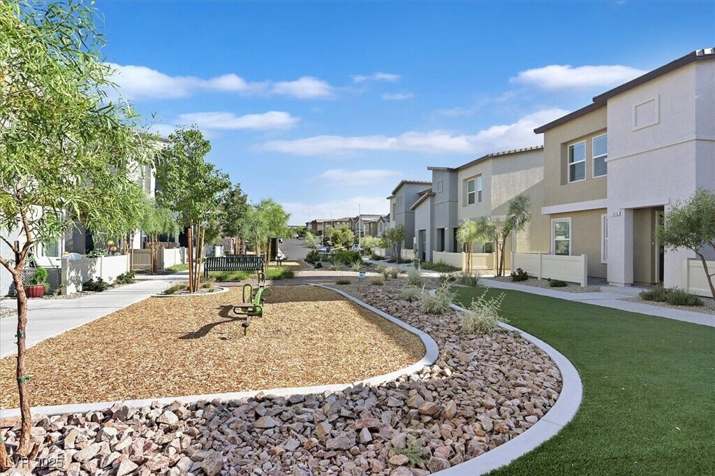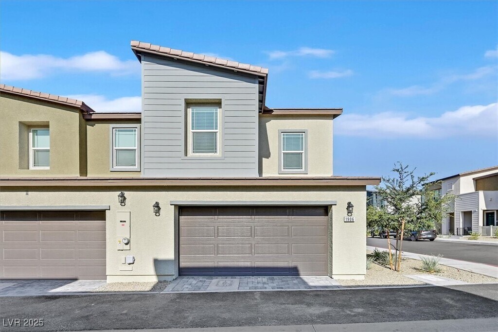 FULLY FURNISHED-just bring your clothes! Sophisticated end-unit townhome—just steps from a resort-style community pool. This brand-new 3-bedroom, 2.5-bath home features luxury vinyl plank flooring, a stunning kitchen with white shaker cabinets, quartz countertops, and premium stainless steel appliances. Smart-home tech, soft water system, reverse osmosis, tankless water heater, refrigerator, washer/dryer—all included. The rear-loading two-car garage offers overhead storage. Upstairs, enjoy three spacious bedrooms plus a versatile loft—complete with a dedicated workspace and an extra bed. Located minutes from the M Resort, Raiders Training Facility, and shopping. Stylish, cozy furnishings and all-new everything—move-in ready and beautifully finished!