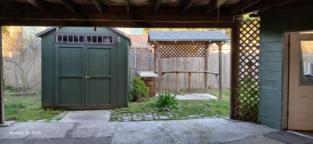 This unique rental offers peaceful living on a one acre lot. Located in the sunbelt up Hwy 20 at 19064 Benson Lane in Fort Bragg. Please read full details. Serious inquiries only. * The main house features: - 1 bedroom/1bathroom with walk-in shower. - Firewood stove for heating. - Kitchen with a small island for cooking. - Large driveway/plenty of parking available. * The second house/living space featured is a detached building connected via the carport. This space offers: - 1 bedroom with walk-in closet. - A half bathroom with shelf space for storage. - A living room with additional loft space and small sink with mirror. - Firewood stove for heating. - Shower room with tub featured, as well. This can be accessed on the outside back porch/seating area. Pictures included. There is a convenient detached laundry room with extra storage space located in the carport area between the two houses. Also, an additional storage shed is located in the backyard for tools, lawn mower, etc. The backyard has raised garden beds, a greenhouse, and small orchard. Plenty of space for starting a beautiful garden paradise or raising chickens. Enjoy peace and privacy with plenty of space to relax and unwind. Pets negotiable upon landlord's approval.