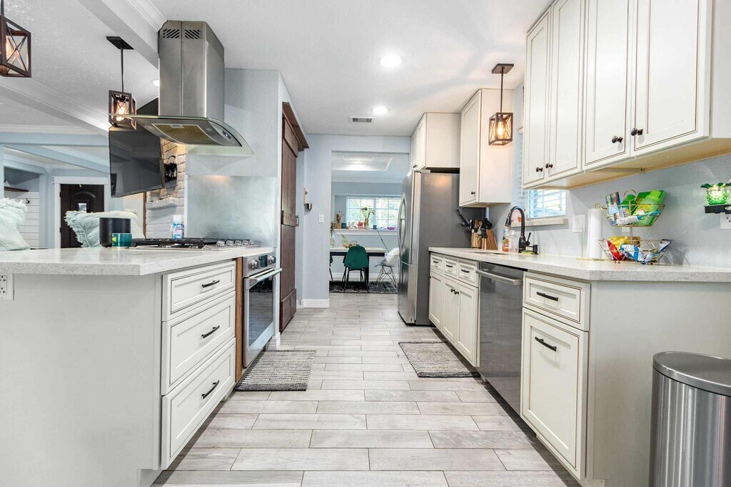 Welcome to 1907 Briarcreek! This tastefully renovated home features an open,flowing layout enhanced with elegant crown molding and extensive improvements throughout. The kitchen is a true highlight,offering quartz countertops,refreshed cabinetry,a gas cooktop,vent hood,double oven,upgraded lighting,and a pantry accented with custom barn doors. A large laundry room provides ample extra storage,while every bathroom has been redesigned with marble counters,contemporary vanities,modern sinks,and a custom walk-in shower in the primary suite. Energy-efficient windows and upgraded electrical add to the appeal. An attached storage/workshop space off the garage is an added bonus,with convenient access to I-45,Hardy Toll Rd,and Beltway 8. MLS# 72297419