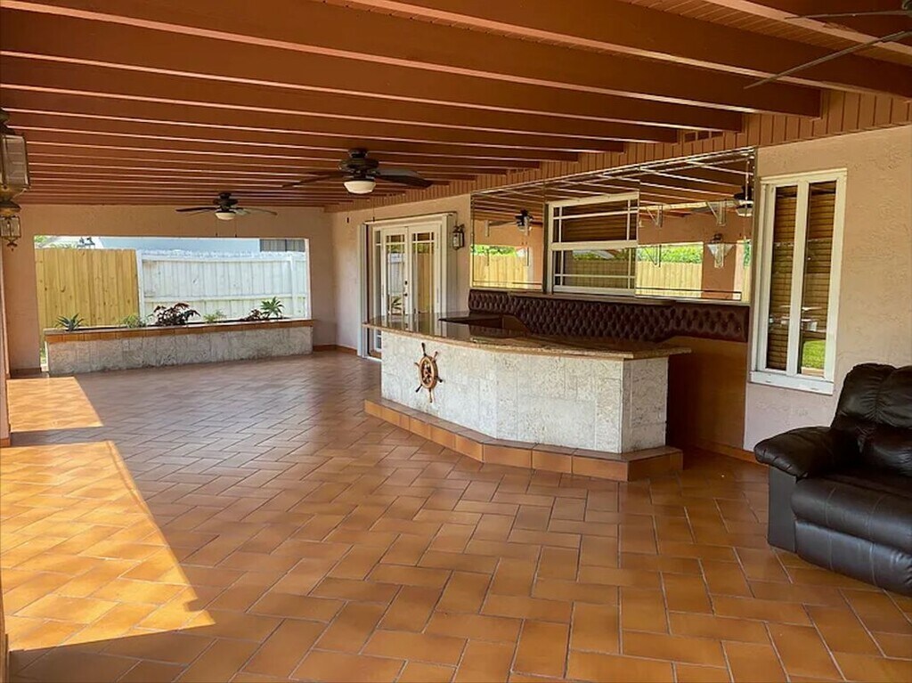 Large beautiful home near Joe Hall Elementary School and WR Thomas Jr. High, on canal, with circular driveway, impact windows and doors, marble floors, remodeled kitchen, laundry room, converted garage that extends the family room even more, and a really spacious terrace with bar to host memorable parties for family and friends. Biweekly lawn maintenance included. Realtors with an active license can bring their clients to earn the standard commission of half month's rent.
