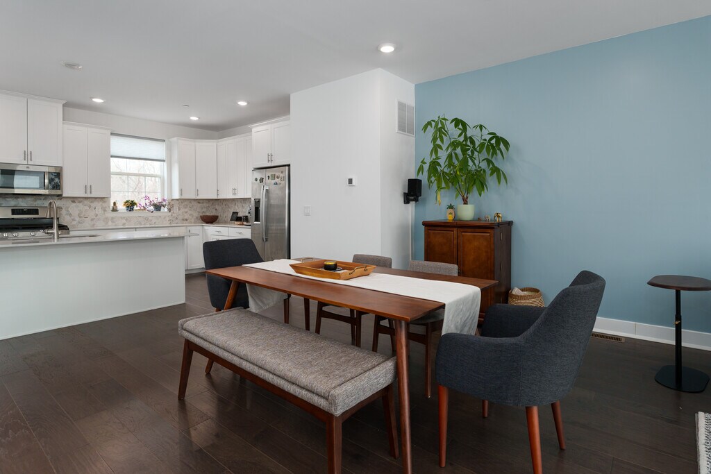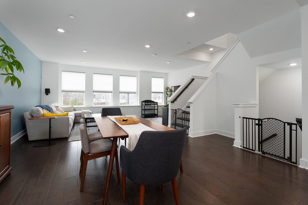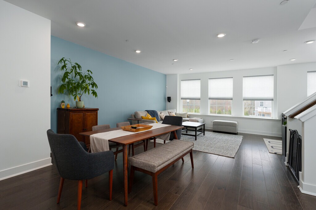 Step into nearly-new -luxury Monroe Parke townhome that already has all the bells and whistles plus smart enabled technologies including a personal EV charging station.Thoughtfully lived in - just enough to work out the kinks - this 3-level home serves up 3 bedrooms, 3.5 baths, and features sure to impress from the sleek flooring and countertops to the stainless-steel appliance package.The first floor has a flexible space that could be a gym, office, playroom, and/or hobby space alongside a full bath,walk out to finished patio and access to the 2 car attached garage. The second level is made for everyday living with the kitchen, dining, and living areas open to one another and a powder room. Access the deck from this level and enjoy your morning coffee or evening grilling with stunning views of the backyard. All three and a half bathrooms are upscale with each level having at least one. The third floor houses the main bedroom with private bathroom and two more bedrooms sharing a hall bath.Easy access to transit are major pluses as are the community clubhouse, pool, playground and more. Level 2 EV Charger available for an additional fee.