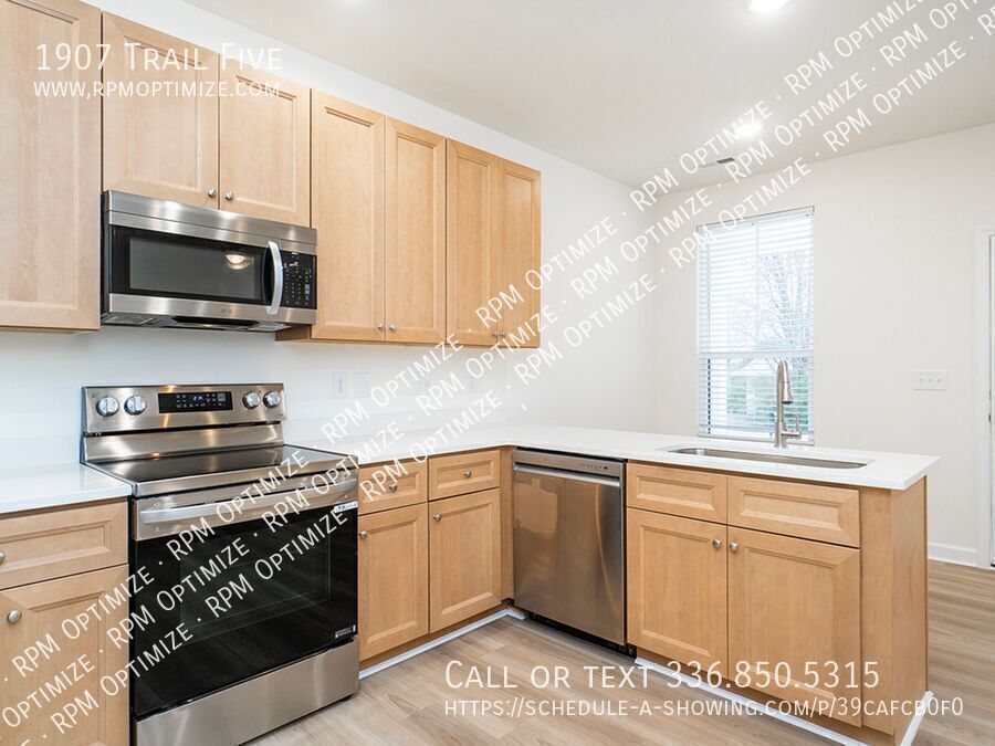 Be the first to live in this newly constructed, never-lived-in, one-story 3-bedroom, 2-bath home. This listing is for one side of a duplex, offering the privacy and feel of single-family living with the convenience of low-maintenance care. Inside, you’ll find luxury vinyl plank (LVP) flooring throughout and a bright, open-concept layout designed for comfortable everyday living. The eat-in kitchen features quartz solid-surface countertops, brand-new stainless-steel appliances, and plenty of cabinet space. Modern touches like keyless entry, central air conditioning, and a full-size in-unit washer and dryer provide added ease and functionality. The spacious primary suite includes a walk-in closet and a private en suite bathroom with a large walk-in shower. Ceiling fans are installed in the living area and two of the three bedrooms for additional comfort. Step outside to enjoy your back patio—perfect for relaxing or entertaining. Driveway parking is included, along with lawn care and exterior pest control, making upkeep simple and stress-free. Pets are negotiable. Conveniently located near shopping and dining in Burlington with quick access to I-40/85, this is one of four brand-new units available. A one-year lease is required. Schedule your showing today and make this beautiful new home yours! Deposit-free move-in options are available through Obligo for qualified applicants, and all residents are enrolled in the $35/month Resident Benefits Package. AVOID RENTAL SCAMS: Real Property Management Optimize exclusively markets this listing and will never request wire transfers or app payments. Back Patio Driveway Parking Exterior Pest Control Included Heat Pump Keyless Entry Kitchen Dining Area New Lvp Flooring New Stainless Steel Appliances Primary En Suite Privacy Fence Separate Shower Shower / Tub Combo Solid Surface Counters Walk In Closets