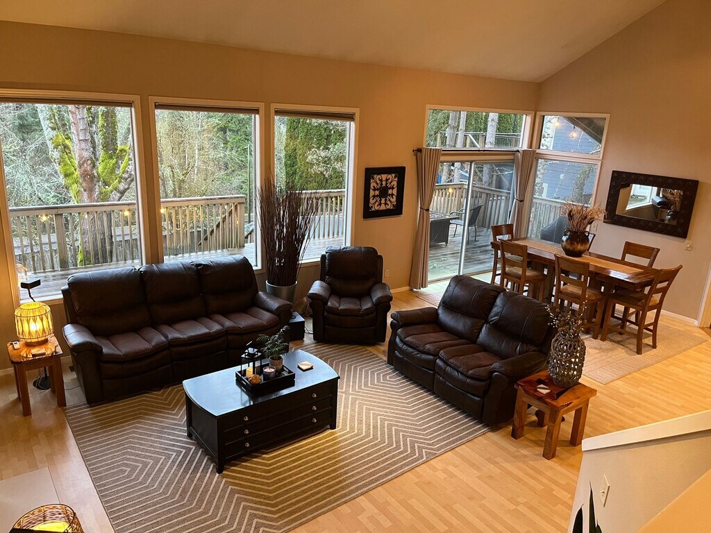 Beautiful contemporary home in popular Fox Hills community in Tualatin. Close to Meridian Park Hospital and nearby shopping. Dramatic entry overlooking vaulted living room! Kitchen has granite counters, eating space with access to deck. Gorgeous primary bathroom with double vanities and jetted tub.Primary bedroom has custom closet. 3rd bedroom has half bath and double entry doors. Huge deck; partially covered. Access to Brown's Ferry Park. Call for an appointment to see this great home!