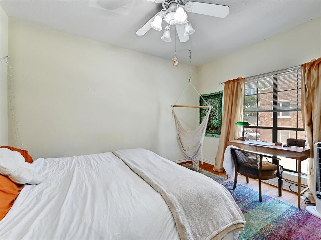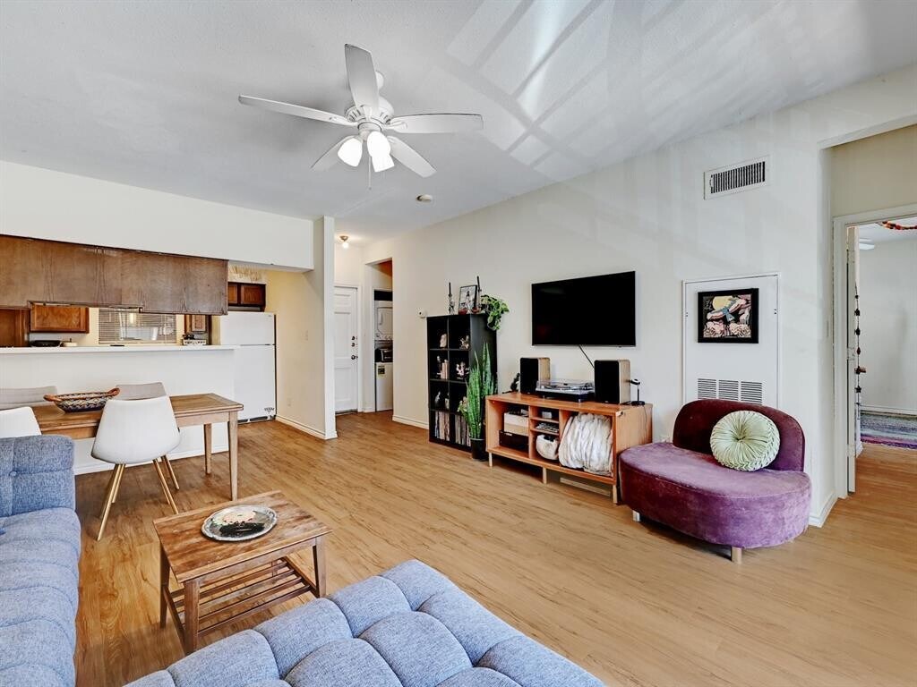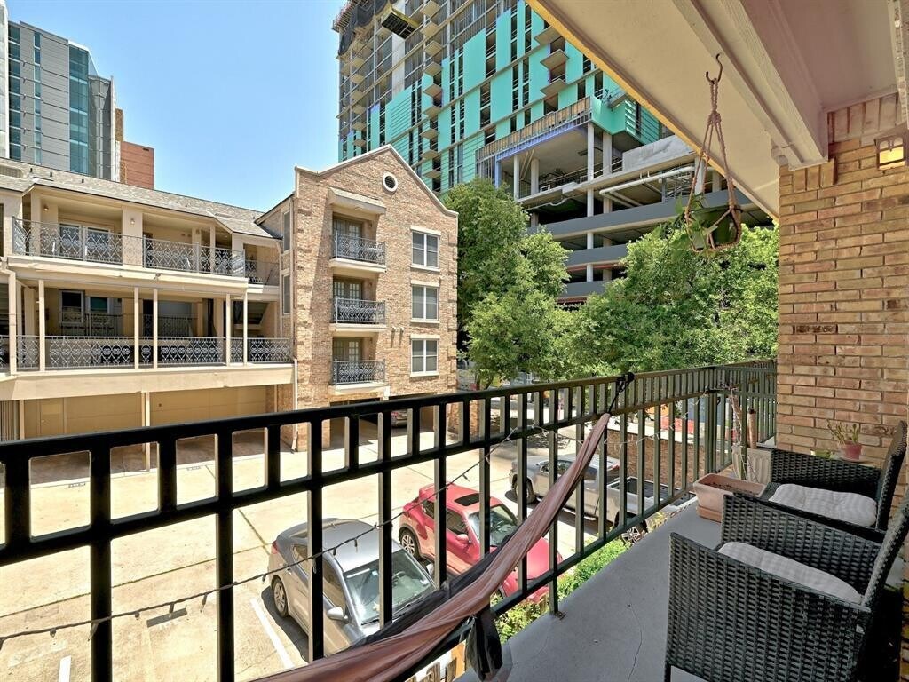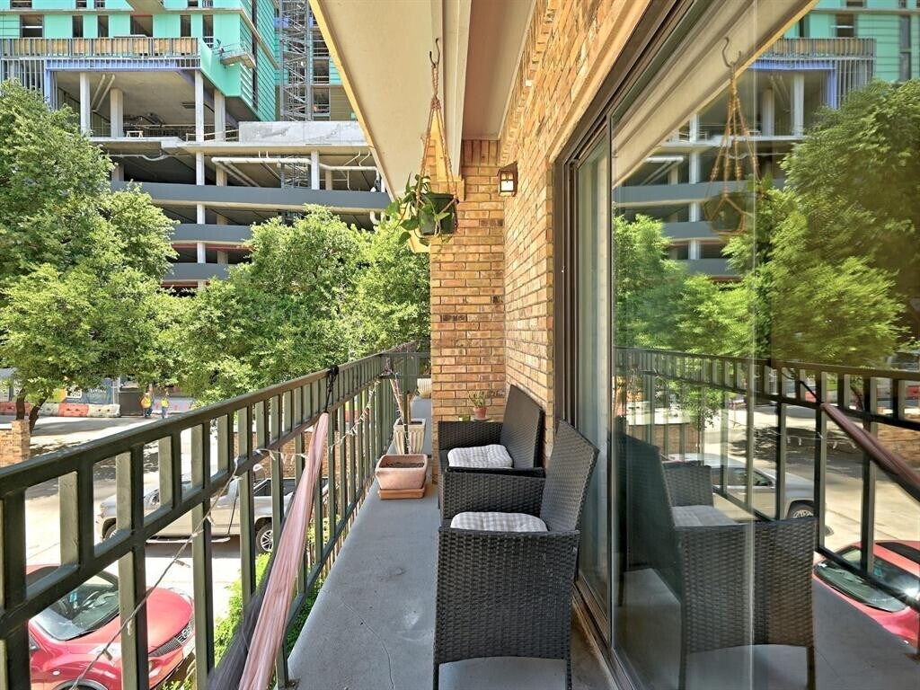 PRE-LEASE FOR AUGUST 2026! Situated just two blocks away from UT Campus. Within short walking distance of all of your favorite hot spots, dining, entertainment, CapMetro/Shuttle, Texas Union and Guadalupe shops. Features faux-wood floors, breakfast bar, and open floorplan with natural light flooding in. Includes community courtyard, large private balcony, washer/dryer, and two reserved parking spaces.