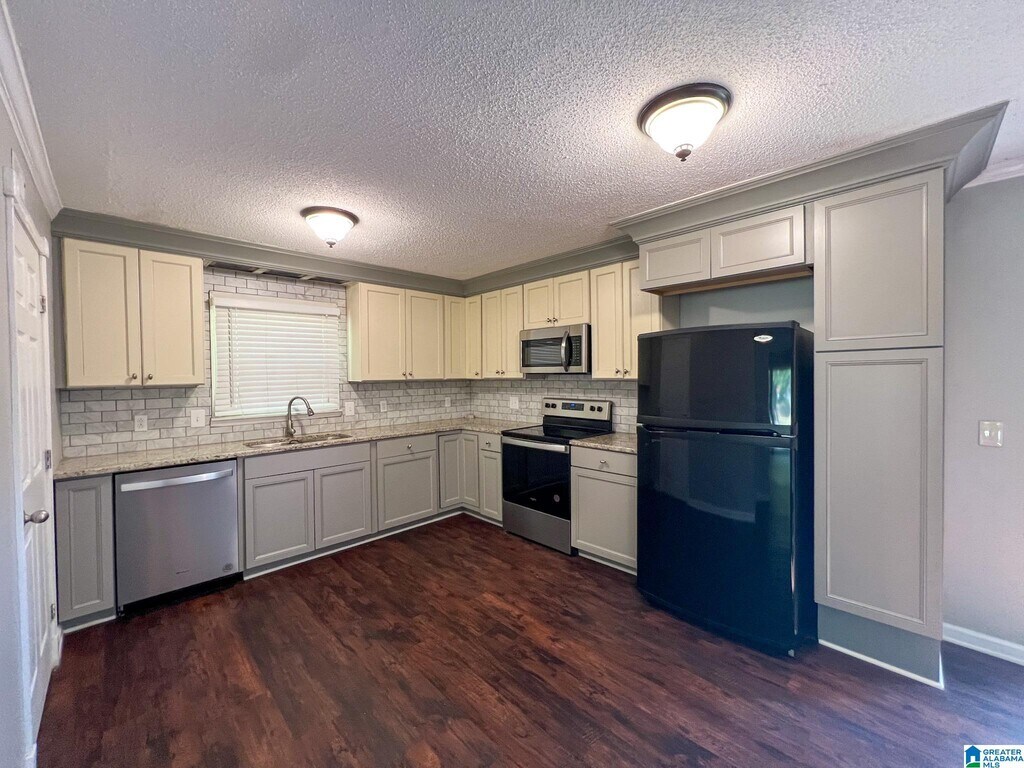 Bright and inviting townhome in Pelham! Convenient to dining, shopping, and the interstate. This open concept features a spacious living room and dining room, and a show stopping kitchen! Stainless steel appliances, fresh gray cabinets, and beautiful granite countertops! The large windows in the den provide amazing sunlight to the main level. The dining space overlooks a relaxing fenced-in cozy patio where you can unwind after a long day at work. Upstairs you'll find three bedrooms and two full baths. Don't miss out on this property, close to walking trails, a dog park, and walking distance to the Pelham YMCA.
