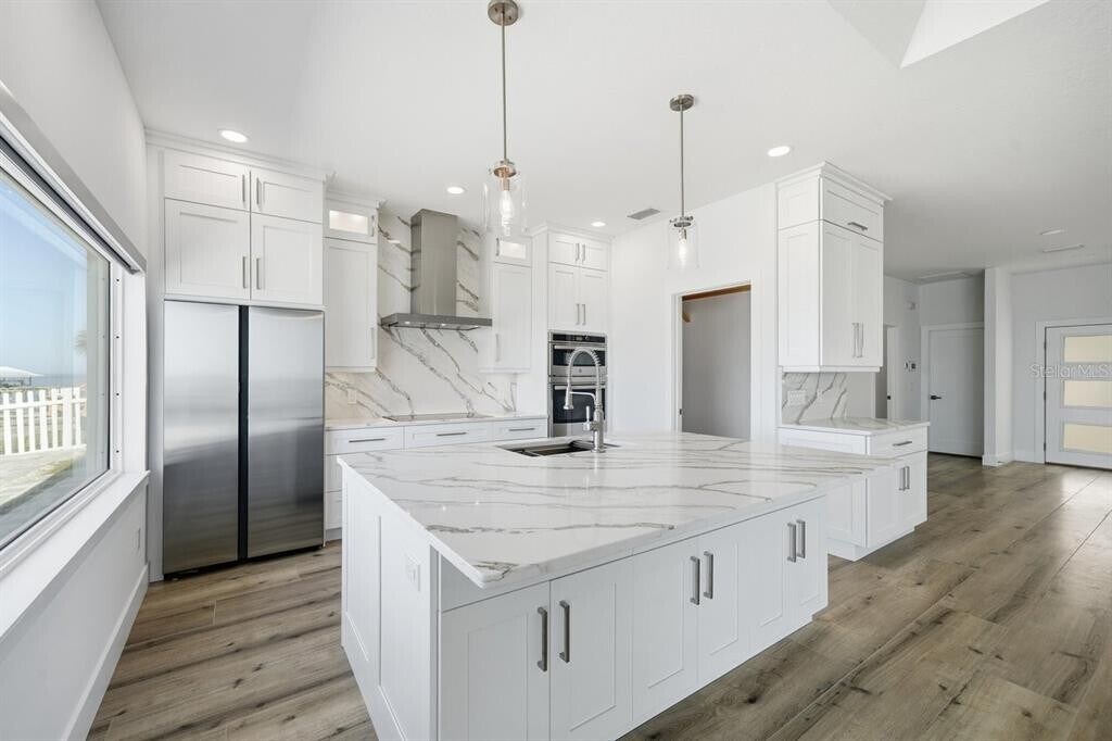 One or more photo(s) has been virtually staged. Discover unparalleled Gulf Front living in this stunning custom-built home with breathtaking OPEN 75’ Gulf front views and sunsets from multiple vantage points! This home features a BRAND NEW DOCK AND SEAWALL and with 3 bedrooms,2.5 bathrooms,and a 2-car garage,this newly constructed home offers the perfect blend of luxury and modern convenience!! This home is a rare find offering the best waterfront living with high end finishes and thoughtful design including a fully equipped gourmet kitchen with new,elegant quartz countertops and backsplash,center island with pendulum lighting and farmer’s sink,new induction cooktop,new stainless steel double oven,sleek stainless steel hood vent and walk in pantry with custom shelving,family room with coffered ceilings and recess lighting perfect for entertaining,formal dining with coffered ceiling,new Luxury Vinyl floors and quad sliders leading you the oversized,raised,paved new patio and to the elongated NEW dock with a newer 7500lb boat lift! Wondrous master suite with astounding water views and walk in closets,exquisite master bath with Quartz countertops,pearl nickel fixtures and vast walk in shower with rainmaker shower head,modern lighting and mirror,immense guest quarters offers the 1st guest room with a walk in closet and impeccable views with a jack-n-jill bath boasting Quartz countertops,tiled floors and walk in shower with pebble flooring accents and rainmaker shower head,third guest room with double closets and beautiful view,NEW Luxury high end flooring throughout and electrical shades for added convenience and comfort and more! Don’t miss your chance to own this piece of paradise! MLS# TB8496619