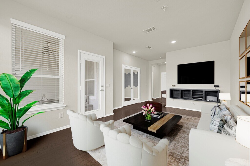 Dena MusfyExperience contemporary living in this stunning three-story home featuring 3 bedrooms 2 bathrooms and 2 half baths. Also has a full second living room and office on the first floor.The striking exterior with clean lines welcomes you into an open-concept interior showcasing rich wood flooring, a spacious living and dining area, and a chef s kitchen equipped with granite counters, stainless steel appliances, double ovens, a gas cooktop, and a large island ideal for entertaining. The expansive living room flows seamlessly for comfortable gatherings. Upstairs, unwind on the private balcony complete with a built-in outdoor kitchen and grill overlooking a serene green space, perfect for morning coffee or evening relaxation. This meticulously maintained home offers abundant natural light, sleek modern finishes, and a two-car garage, all nestled in a desirable community with nearby dining, shopping, and quick access to major highways.
