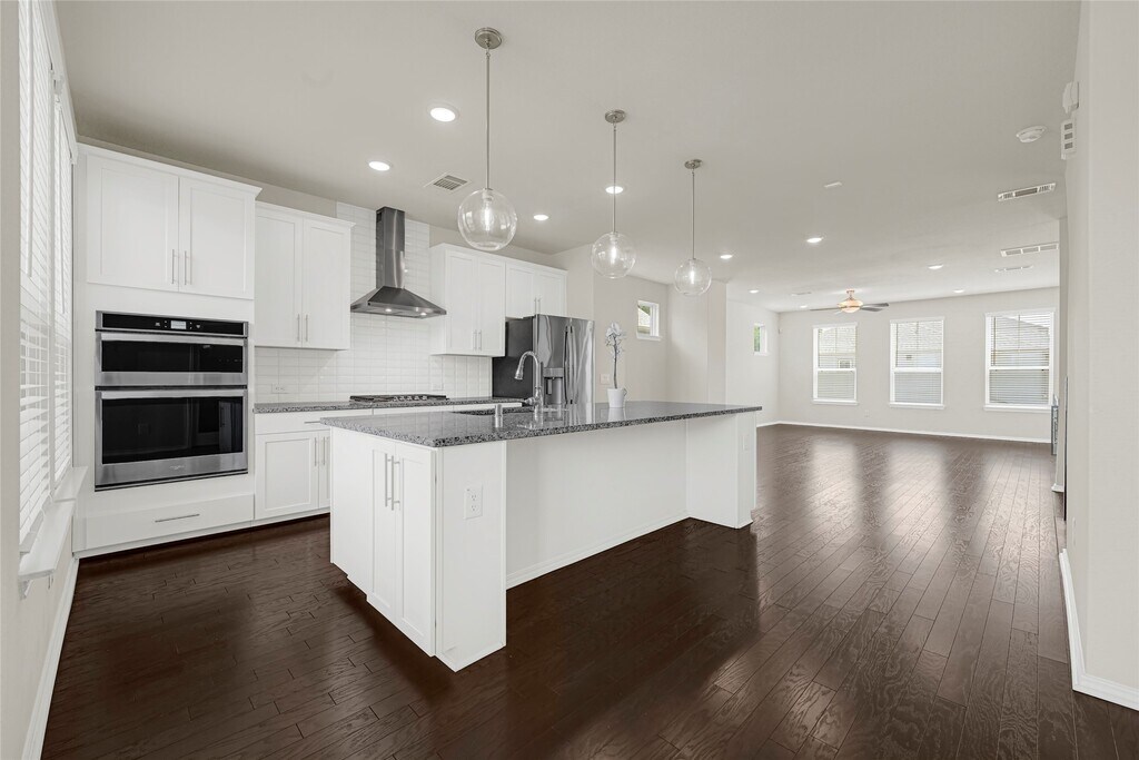 Experience contemporary living in this stunning three-story home featuring 3 bedrooms 2 bathrooms and 2 half baths. Also has a full second living room and office on the first floor.The striking exterior with clean lines welcomes you into an open-concept interior showcasing rich wood flooring,a spacious living and dining area,and a chef’s kitchen equipped with granite counters,stainless steel appliances,double ovens,a gas cooktop,and a large island ideal for entertaining. The expansive living room flows seamlessly for comfortable gatherings. Upstairs,unwind on the private balcony complete with a built-in outdoor kitchen and grill overlooking a serene green space,perfect for morning coffee or evening relaxation. This meticulously maintained home offers abundant natural light,sleek modern finishes,and a two-car garage,all nestled in a desirable community with nearby dining,shopping,and quick access to major highways. MLS# 69612390