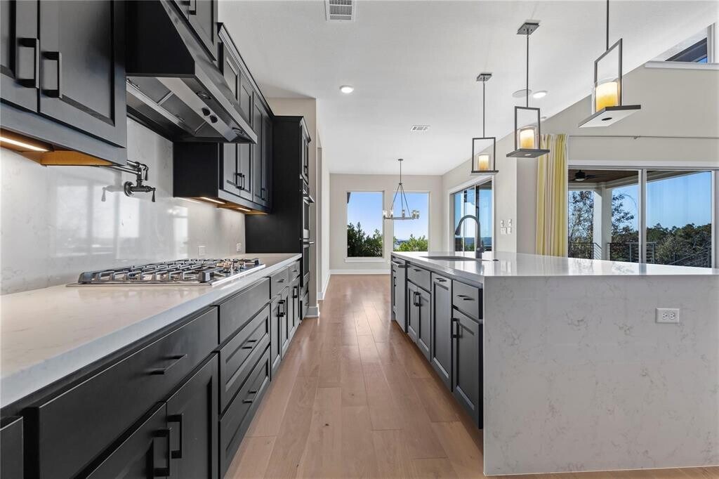 DON'T MISS IT! VIEWS! VIEWS!! VIEWS!!!! One of the most sought after and popular former model home for many years in greater Austin area is up for rental. CATALINA FORMER MODEL HOME has attracted many to buy homes in Travisso and other communities for years. STUNNING views with the lot and home being located in one of the most ideal locations in the entire community. This SPECTACULAR luxury home boasts every luxury upgrade you could ask for - over $600k+ upgrades. Showcasing five large bedrooms, each with its own bathroom, a dedicated office, dining room, game room, and media room, the well-appointed floor plan was designed for flexibility and entertainment. The main living area boasts a soaring two-story ceiling, filling the space with natural light and perfectly accented with a floor-to-ceiling custom fireplace. The owner's suite and guest bedroom on the main floor, offer the ultimate flexible layout and multi-generational living. The 2nd level features three bedrooms, a media room, and game room with direct access to the covered balcony. The resort-like backyard includes an extended covered patio, exterior fireplace and outdoor kitchen. Moments from the neighborhood park and all the luxurious amenities Travisso offers, including tennis courts, hike/bike paths, jogging trails, a fitness center and a farmers market. Zoned to exemplary Leander ISD schools, and minutes from shopping + dining. A truly exquisite home with the wow factor at every turn.