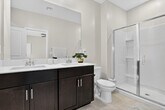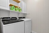 Step into this almost-brand-new,energy-efficient home built in 2024 complete with washer,dryer,refrigerator,and window treatments already in place. With no neighbors behind,you'll enjoy added privacy and a peaceful backdrop from your spacious backyard. Located in an amenity-rich community,this home sits just steps from the community pool,playgrounds,and pickleball court all visible from your front yard for ultimate convenience. Inside,the open great-room layout centers around a large kitchen island,perfect for casual dining or gathering with friends and family. The kitchen features dark Umber cabinetry with hardware,granite countertops,and tile flooring throughout,with carpet in the bedrooms for added comfort.This inviting 3-bedroom,2-bath home is designed with warmth,flow,and functionality in mind.Built with spray foam insulation for enhanced comfort,health,and energy savings,this home offers long-term peace of mind. Additional upgrades include an epoxied and insulated garage and a pre-plumbed soft water loop,adding even more value and convenience.
