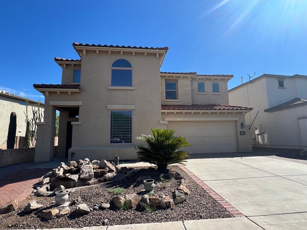 GREAT PRICE!!! ONE MONTH FREE ON 12 MONTH LEASE!!! Welcome to this stunning former model home in the vibrant Rancho Sahuarita community—a true gem with thoughtful upgrades throughout! This spacious 3-bedroom, 2.5-bath Pulte Toledo model offers 1,996 sq ft of comfortable, modern living. Step into the grand vaulted living room that creates an inviting entrance, leading to a formal dining area and an open-concept kitchen perfect for entertaining. The kitchen has spacious countertops, abundant cabinetry, a large pantry, gas stove, built-in microwave, and all appliances included for effortless meal prep. Adjacent is a cozy den/family room featuring a gas fireplace for those relaxed evenings. Upstairs leads to the luxurious master suite that offers a private retreat with elegant French doors, a full attached master bath including linen closet, double vanity, roomy walk-in shower, and expansive walk-in closet. Two additional generous bedrooms provide plenty of space with ample closets. Convenience abounds with an included washer/dryer in a separate spacious laundry room, built in water softener, and a 2-car garage for with shelves for storage and parking. Outside, enjoy a low-maintenance backyard oasis with artificial turf, pavers, a covered flagstone patio, charming gazebo, - perfect for outdoor gatherings. Backing to open space with no neighbors behind and a buffer on one side, you'll relish the added privacy. As a resident of Rancho Sahuarita, you'll have access to fantastic amenities like pools, parks, lakes, fitness centers, walking trails, and community events. This small dog-friendly (with approval) home combines style, comfort, and convenience in a family-friendly neighborhood close to schools, shopping, and I-19 for easy commuting. Available now—schedule your tour today and make this your new haven! Wasger / Dryer *as is condition*