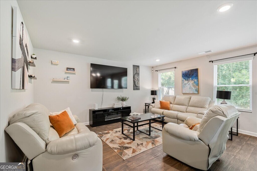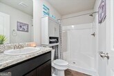 Modern living meets classic comfort in this stunning 5 bedroom, 3 bathroom home located in the peaceful Goodall Woods community. Built in 2022 and nestled on a .32 acre level lot, this home offers plenty of space inside and out for everyday living and entertaining. Step inside to find a welcoming layout with high ceilings, wide entryways, and an effortless flow from room to room. The spacious kitchen is a true standout, boasting sleek granite countertops, stainless steel appliances, a large island, and generous cabinet storage all open to a light-filled family room that invites connection and comfort. On the main level, you will find a private guest bedroom and full bath, offering flexibility for overnight visitors or multi generational living. Upstairs, the oversized primary suite is your personal retreat, featuring a spa-inspired bathroom with dual sinks and two separate walk in closets. Three additional upstairs bedrooms provide the space you need for family, hobbies, or hosting guests. The second floor laundry adds everyday convenience, while the LVP flooring throughout the main level offers durability and style. Outside, enjoy the benefits of a flat, usable backyard ideal for pets, play, or your future backyard vision. With a thoughtfully designed floor plan, quality finishes, and a prime location just minutes from schools, shopping, and dining, this home is the total package.