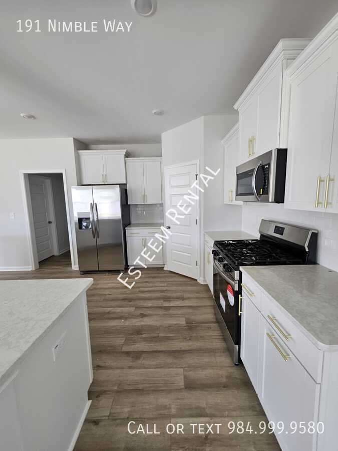 Luxury Single-Family Home for Rent with Fenced Backyard! 4 Bedrooms | Loft | Separate Office | 2-Car Garage Discover the perfect blend of luxury and convenience in this stunning home, just 15 minutes from downtown Raleigh! The main level features an open-concept design with a modern kitchen that includes sleek quartz countertops, a spacious center island, and seamless flow into the family and dining areas. Cozy up by the fireplace or take advantage of the dedicated office space, ideal for working from home. Step outside to enjoy a large patio overlooking a fully fenced, flat backyard—perfect for outdoor relaxation and entertainment. Upstairs, you'll find a versatile loft space, great for a second living area or a game room. The luxurious master suite offers two walk-in closets and a spa-like bathroom with dual vanities and a walk-in shower. Three additional bedrooms provide plenty of space and storage. Move-in ready with all the essentials, including a refrigerator, washer, dryer, and blinds. Plus, you'll enjoy access to the neighborhood's green space and future amenities, like a pool and pickleball courts. Prime location near top employers, shopping, dining, schools, and major commuting routes. This home has it all—schedule your tour today!