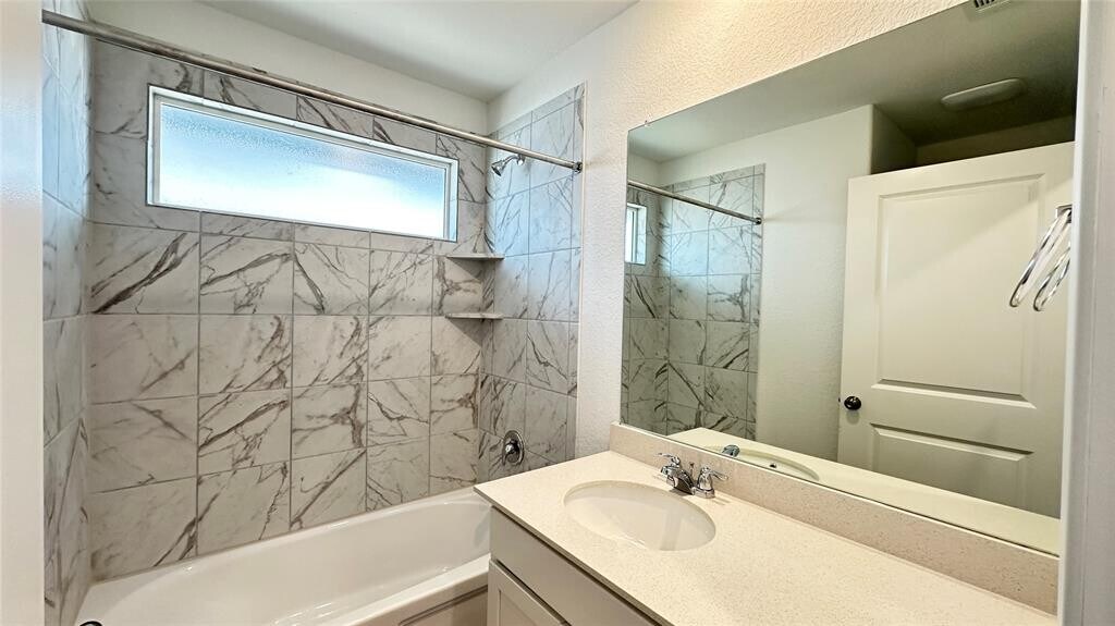 * 200 OFF ON FIRST MONTH RENT* You must see this gorgeous single-story home with four bedrooms and three full bathrooms located in the Plum Creek North community in Kyle Texas. The roofed entrance welcomes you to a hall that flows into a spacious open floor plan. There is a kitchen and living area that is covered with wood-like flooring and numerous bright windows. The functional kitchen features a large center island with elegant dark brown cabinets. This kitchen comes equipped with new all new appliances including refrigerator, plenty of counter space, and a large walk-in pantry that is perfect for any home chef! The primary bedroom offers soft carpeted floors, a huge walk-in closet, double vanity sinks, a garden bathtub, a stand-in shower, and built-in functional shelves. Additional bedrooms have carpeted flooring, well-sized closets, and easy access to a full bathroom with a shower/tub combo. The in-unit laundry room has brand-new washer and dryer appliances. This home also features a two-car garage that comes with two key clickers, solar panels, and a fully enclosed private backyard. Less than 10 minutes away from Costco, Home Depot, EVO Entertainment, H-E-B Plus, Lowes, Target, and Ascension Seton Hays Hospital. High and Middle schools within a mile. There are so many delicious choices to go out to eat nearby like Dessert Kart, P-Terry's, and many more. Plum Creek is also located 20 miles south of the heart of downtown Austin and 58 miles from the center of San Antonio. SOLAR UTILITIES MAY RANGE FROM $45 - $65. TO BE BORN BY TENANT. Schedule your tour today and be the first to live in this newly constructed home! Call the listing agent for the lock box code and see the property by yourself. You need to furnish ID. House comes with solar with monthly $65 extra for solar to be paid by tenant ** $150 admin fee to be charged from tenant for lease agreement and other documentations.