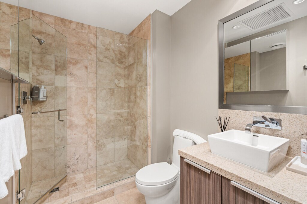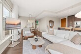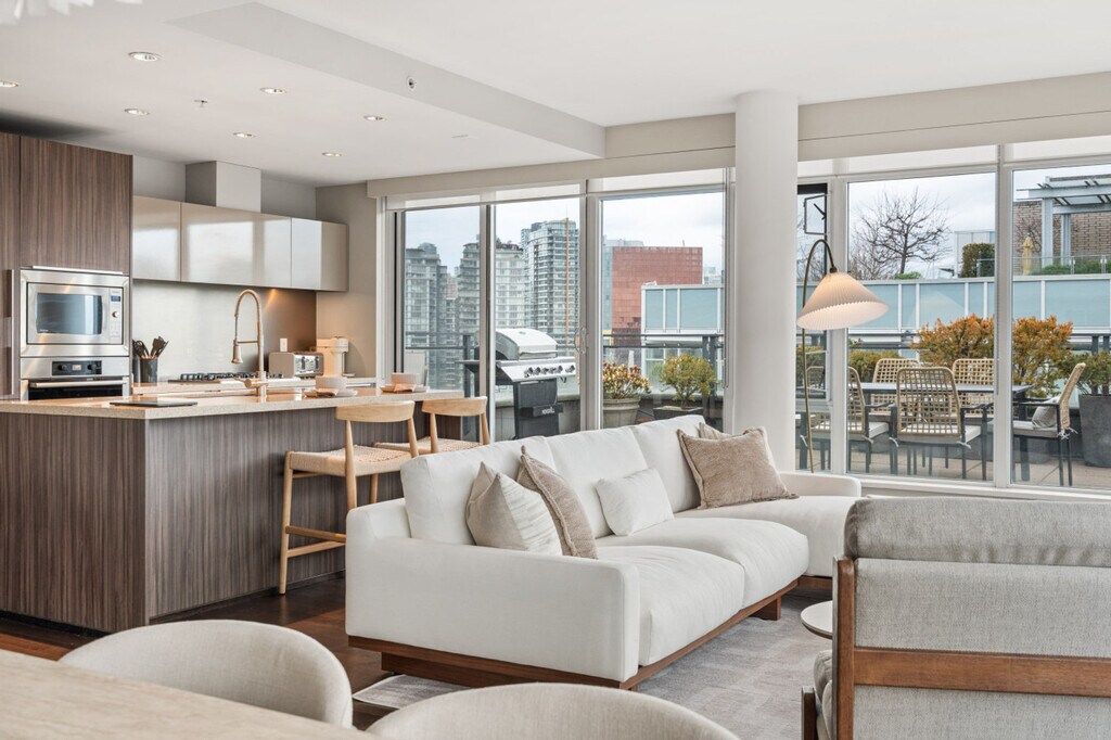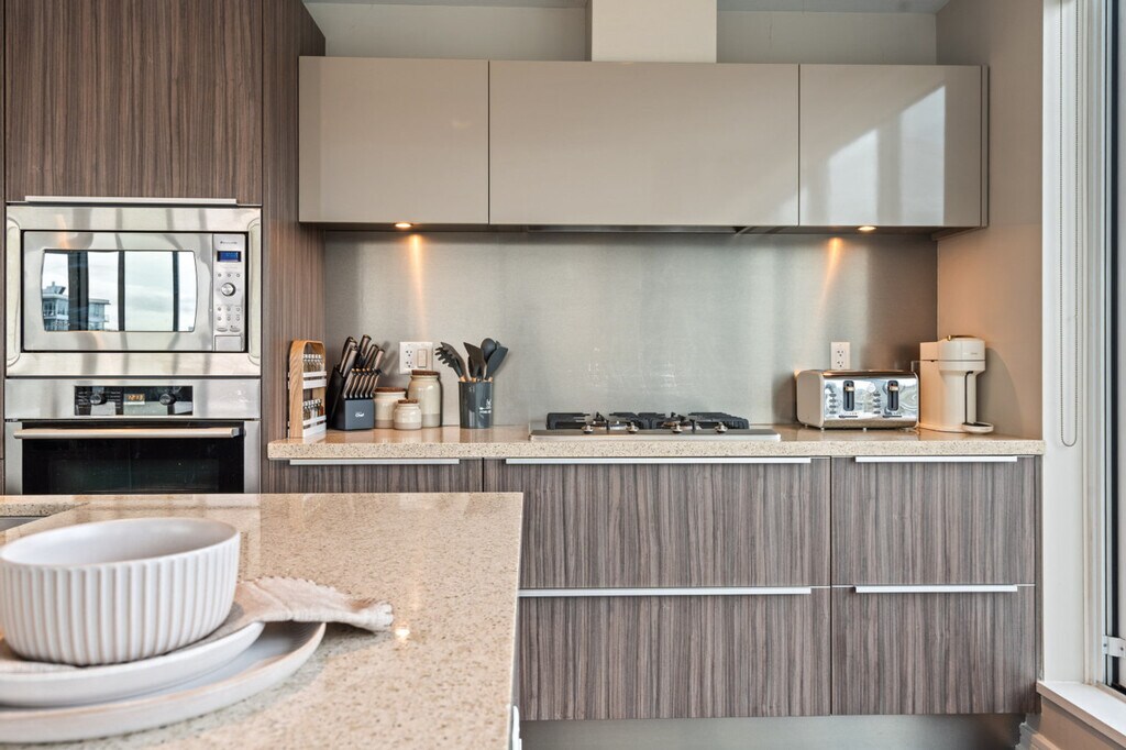 Feel at home in this spacious 2-bedroom, 2-bathroom condo in Mount Pleasant West, ideal for longer stays and offering an elevated and comfortable living experience. The open-concept layout features a modern kitchen, generous living and dining areas, and floor-to-ceiling windows with open city views. This condo also features a private balcony ideal for relaxing or taking in the view, in-suite laundry, a dedicated workspace, and a comfortable living area with a Smart TV. The contemporary kitchen is equipped with full-size appliances and island seating, and the dining table comfortably seats six. Secure underground parking for one vehicle is included. Pets are allowed upon request with a pet fee of $100 CAD. Located in Mount Pleasant West, this home offers a rare blend of space, walkability, and connectivity. The neighborhood is known for its creative energy, acclaimed restaurants, cafés, and craft breweries, while being moments from False Creek and a short walk to Olympic Village. Downtown Vancouver, Main Street, and Cambie Street are all easily accessible, making this a highly desirable central base. The condo is conveniently located within walking distance of bus routes and Olympic Village Station, providing easy access to Downtown Vancouver and surrounding neighborhoods. Major roads such as Cambie Street, Main Street, and the False Creek bridges are nearby, making it simple to get around by car, bike, or transit, while Vancouver International Airport is approximately 20 minutes away. Landmarks include False Creek Seawall (3-minute walk), Olympic Village Square (2–3 minute walk), Science World (~12-minute walk), BC Place Stadium (~6-minute drive), Rogers Arena (~8-minute drive), and Downtown Vancouver (~10-minute drive). No parties, events, or large gatherings are allowed. Smoking is prohibited in the property and its vicinity. [SI]