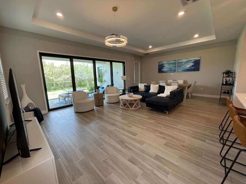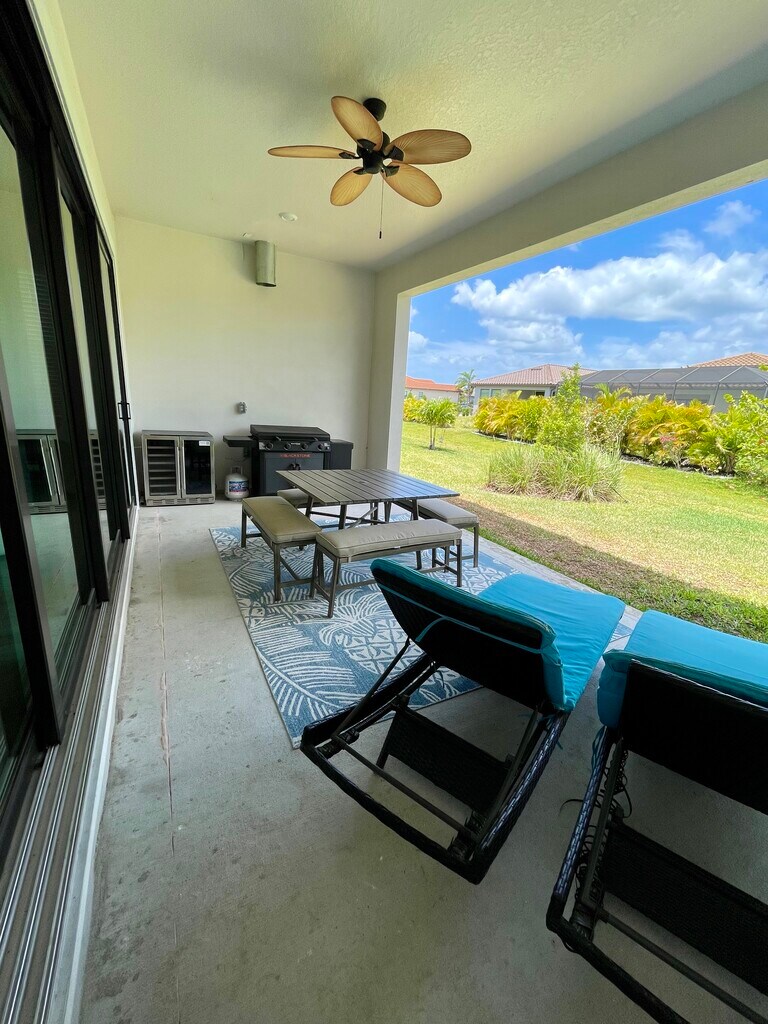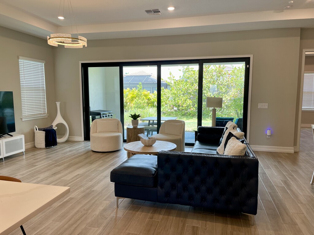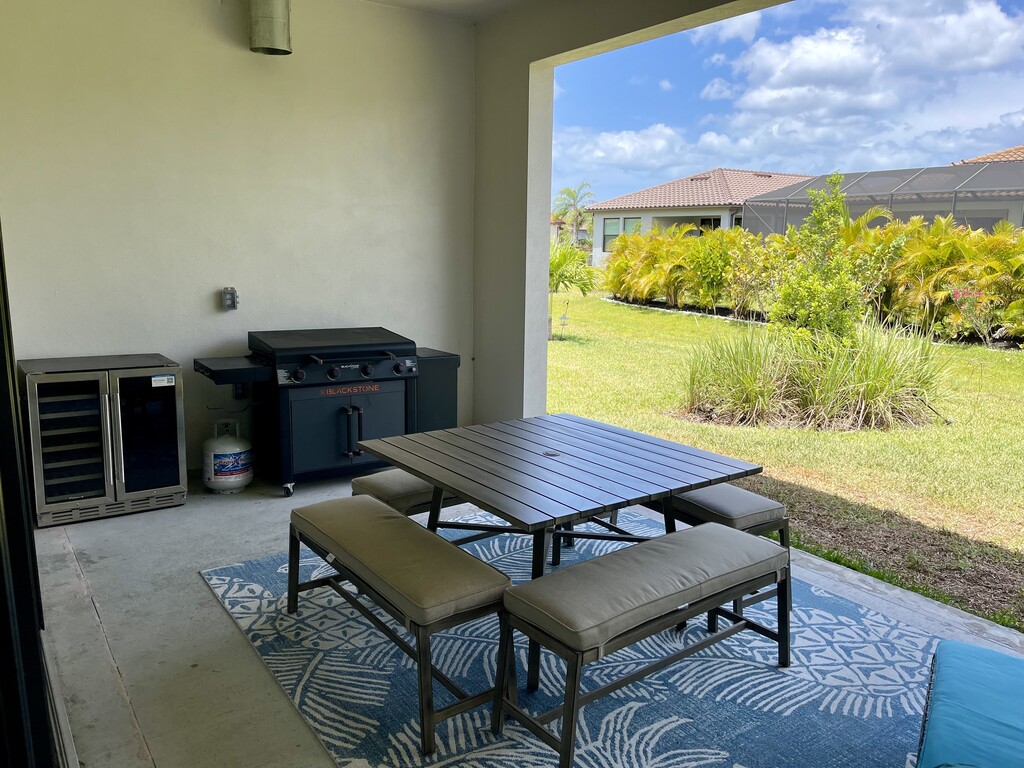 AVAILABLE MARCH 2026 - 3 Month minimum. Lease terms are negotiable. Waterfront community fully furnished rental property. Within a gated community along the sunny shores of the Manatee River. This newer, expansive 3-bedroom, flex room study, 2.5-bathroom spacious open-concept layout boasts a seamlessly flowing living area, perfect for relaxation. The heart of the home is undoubtedly the gourmet kitchen with Quartz countertops with Large Island, high-end stainless steel appliances, and ample cabinet space for all your culinary needs. The family room leads to a large covered lanai for outdoor dining. The owner's suite has a king size adjustable bed and provides a spa like ensuite bathroom, walk in shower, and dual vanities and a large walk-in closet. The additional generously sized bedrooms share a Jack and Jill- style bathroom, and right across the hall a convenient half bath. Surrounded by lush landscaping, relax on the front sitting area with your morning coffee and relax in the evening as the sunsets. Home has hurricane impact- resistant windows, doors and garage doors. Lawn care is included. There is also a community private beach right on the Manatee River. Two car garage for added convenience. Renter of this home also has access to a community clubhouse that is conveniently located across the street with a fitness center, pool, spa, event center and game room. Your beach needs are covered with beach chairs, wagon, umbrella and towels. Sanctuary Cove is a beautiful community conveniently located near downtown Bradenton, Anna Maria Island beaches, Sarasota and St. Petersburg. Located in close proximity to airports, dining, boating and golfing near by. HOA requires a background check. No Cats, Dogs allowed at owner's discretion and will require a non-refundable pet fee. There is a $250.00 cleaning fee. Non smoking/vaping home! Tenants are responsible for all utilities. Wifi Fee Monthly $55.00 Rate: May- December $4,250 Rate: January - April $4,900 Don't miss your chance to rent this tropical oasis!