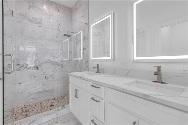Experience the pinnacle of sophisticated urban living in this stunning 2-bedroom, 2.5-bathroom end-unit condo situated in the vibrant heart of Dallas. This rare residence lives like a custom townhome, offering the perfect blend of luxury and privacy. The heart of the home is a chef-inspired kitchen that serves as a masterpiece of both form and function. It features a large center island, sleek quartz countertops, and a premium gas range, all anchored by a convenient beverage fridge for effortless entertaining. This bright and airy culinary space flows seamlessly into the adjacent family room, creating an inviting atmosphere for daily living or hosting guests. For added convenience, a stylish powder room is located on the main level to serve the common areas. Beautiful hardwood flooring and elegant custom blinds are found throughout the spacious, open-concept floor plan. The second floor is intelligently designed with two bedroom suites, each serving as a private sanctuary with its own dedicated ensuite bath and generous closet space. This dual-suite configuration offers maximum flexibility for a high-end home office, or guest quarters. What truly distinguishes this property from anything else in the city is the exceptional outdoor space. Residents can enjoy the rare luxury of a private, fenced side yard, in addition to an expansive rooftop patio. This sky-high oasis is finished with high-quality, low-maintenance turf, providing a serene environment for relaxing or hosting unforgettable gatherings with city views. Complete with an attached two-car garage for secure parking and extra storage, this home offers the lock-and-leave convenience of a condo without sacrificing the amenities of a single-family residence. Located just minutes from the best dining, shopping, and entertainment Dallas has to offer, this property represents a unique opportunity to lease a true urban sanctuary.