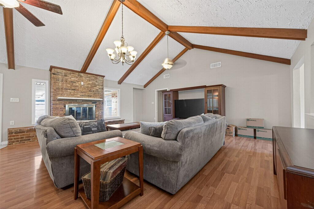 Custom-built by a former League City Mayor,this one-of-a-kind 4-bedroom,3-bathroom home offers 3,545 SF of timeless elegance and thoughtful design. From the premium brick exterior and wrought iron gate to the vaulted ceilings,granite countertops,and classic brick accents inside,every detail reflects quality craftsmanship. The layout balances entertaining and everyday living with an open-concept main living area and a private bedroom wing for added retreat. A stunning glass-walled family room overlooks the backyard terrace and sparkling pool—perfect for gatherings and summer evenings. The fully equipped guest/pool house with kitchen and full bath offers flexible space for visitors,multigenerational living,or a home office. Convenient access to I-45 makes commuting to shopping,entertainment,dining,and downtown Houston a breeze. MLS# 27848832
