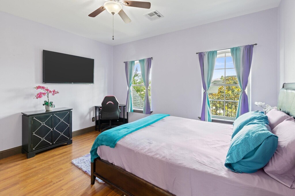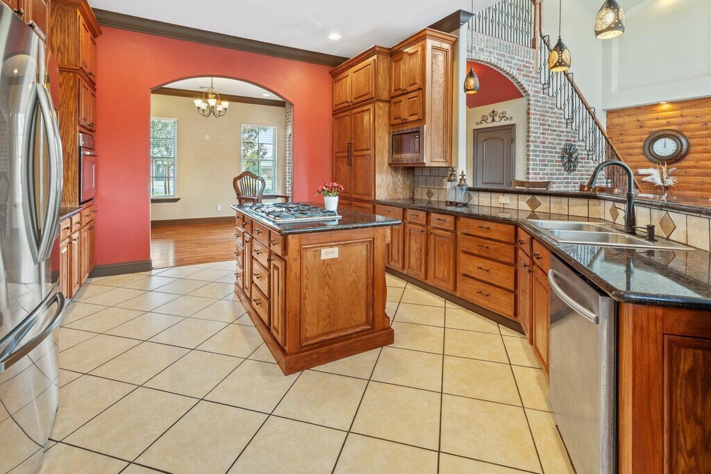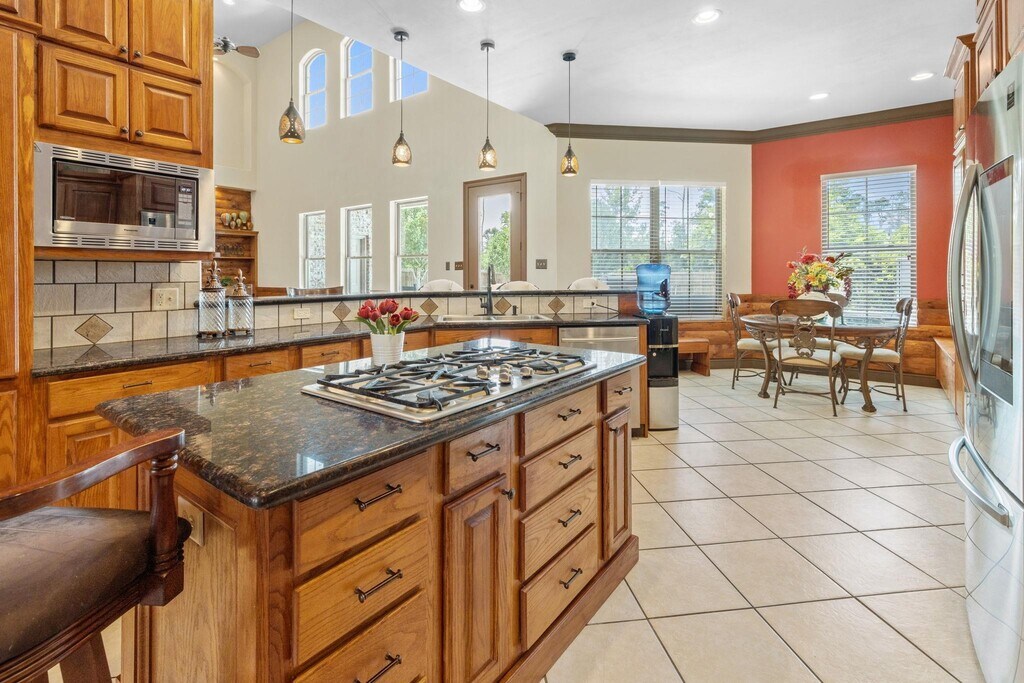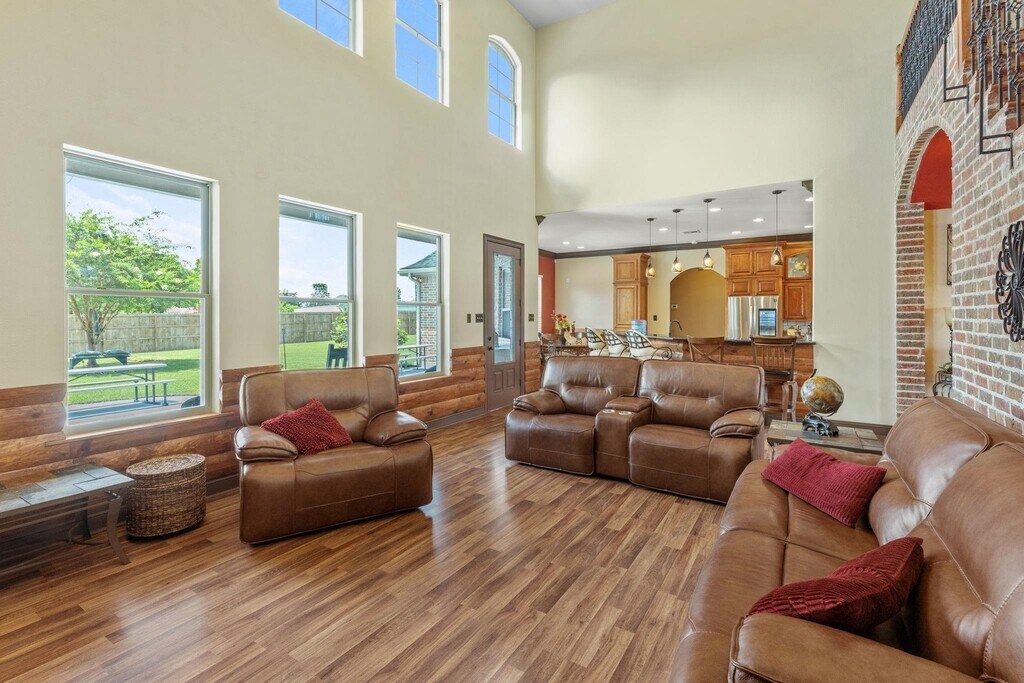 Impeccable Large Luxury Home for Lease in The Vineyards, Moss Bluff! This well-maintained New Orleans-style home offers 5 bedrooms, 4.5 baths, and a stunning living room with 20+ ft ceilings and a cozy gas/wood-burning fireplace. The chef’s kitchen features custom cabinetry, granite counters, gas stovetop, stainless appliances, and a breakfast nook plus formal dining. The downstairs primary suite boasts tray ceilings, dual walk-in closets, soaking tub, and custom shower. Upstairs are 3 bedrooms with walk-in closets, 2 baths, a common area, and a balcony with gorgeous neighborhood views. Enjoy over ½ acre with mature trees, privacy fence, extended patio, built-in outdoor kitchen with gas grill, and A/C outdoor bath—perfect for entertaining. Additional perks: spray foam insulation, 2 tankless water heaters, central vacuum, home audio, 3rd-level attic storage, and a 2-car garage. All measurements are M/L.