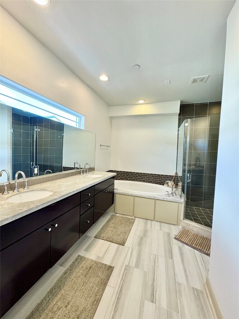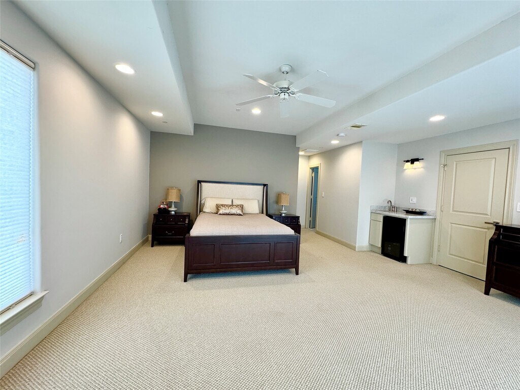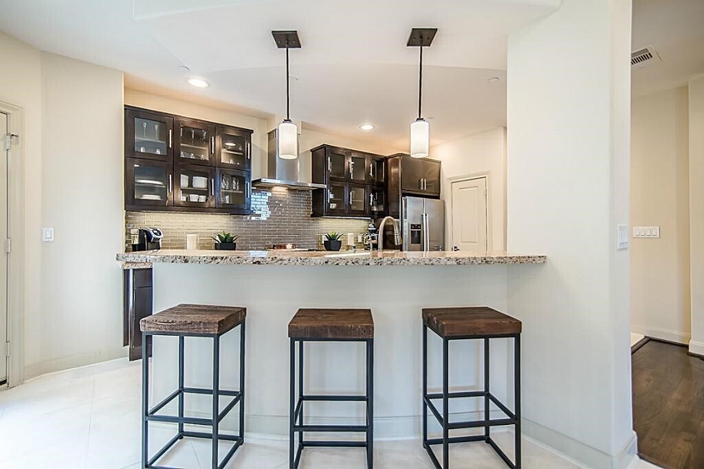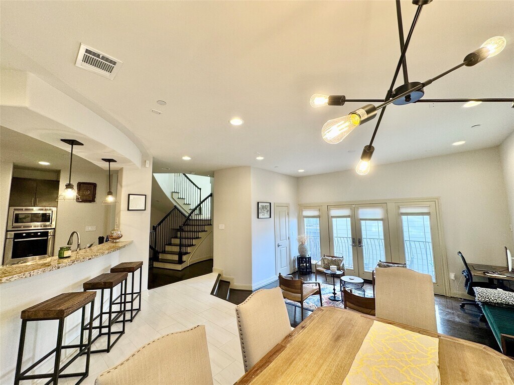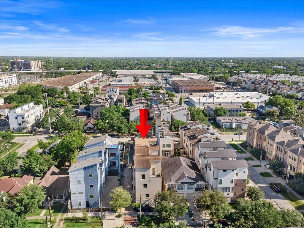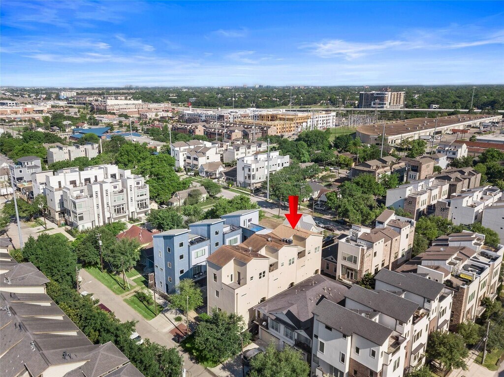 Stunning four-story end unit home with a gated driveway,natural light throughout,situated in a very walkable neighborhood with access to restaurants,groceries and hike and bike trails. Close to major freeways - 10,59 and 45. This home offers 3 bedrooms & 3.5 bathrooms,with beautiful walnut color hardwood flooring,high ceilings,a roof deck patio with a view of the Downtown skyline and balconies on every level. The master bedroom and bath spans the entire third floor and features a jetted tub,and a wetbar with a sink and mini fridge. All bedrooms have an ensuite bathroom and walk-in closets. This massive home is powered by 2 A/C units offering flexibility in temperate control. Washer,dryer,fridge and microwave included! This home offers a gas stove and oven,too. New interior paint! MLS# 62591021