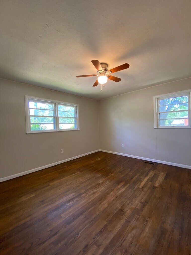 Single level home with fresh paint and hardwood floors, 3 bedrooms, 1 bath, eat-in kitchen with range, fridge, and dishwasher, living room, den/office space, and laundry room. All located on a large lot with patio, small covered porch, fenced back yard, and 5 minutes from I-20. No Section 8. No pets over 45 lbs. **Large storage building can be included for additional $100/month.