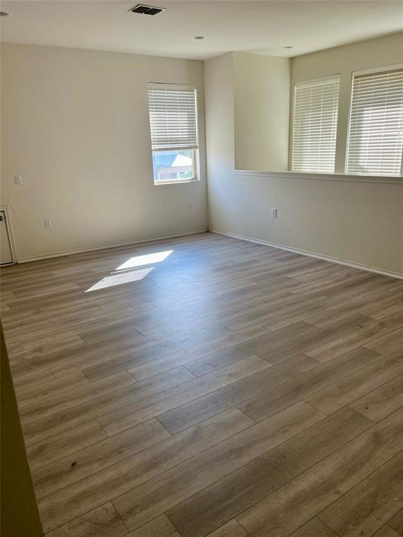No carpet . Vinyl floor. refrigerator, washer and dryer is provided per request. Convenient location. Cozy house, really bright and open and has designer finishes throughout. High ceilings, spacious bedrooms, Corian countertops, two car garage, deck and fenced yard. Large master suite with double vanities and walk in closet. HOA maintain front yard.
