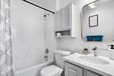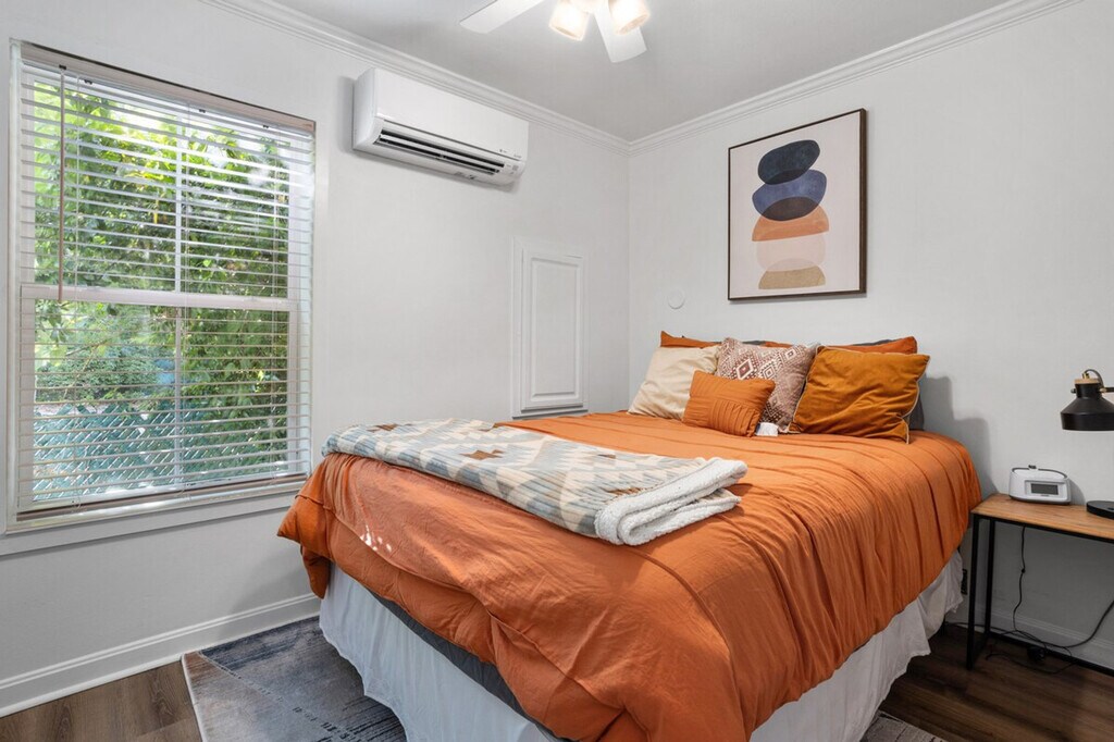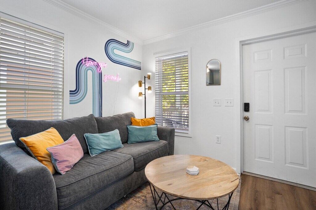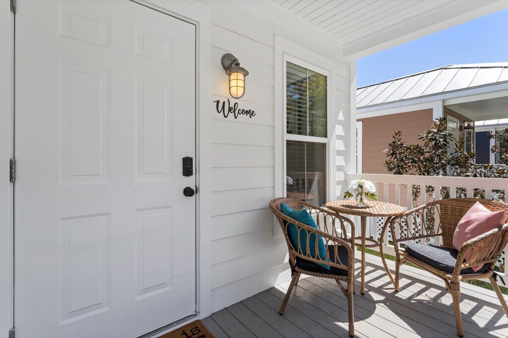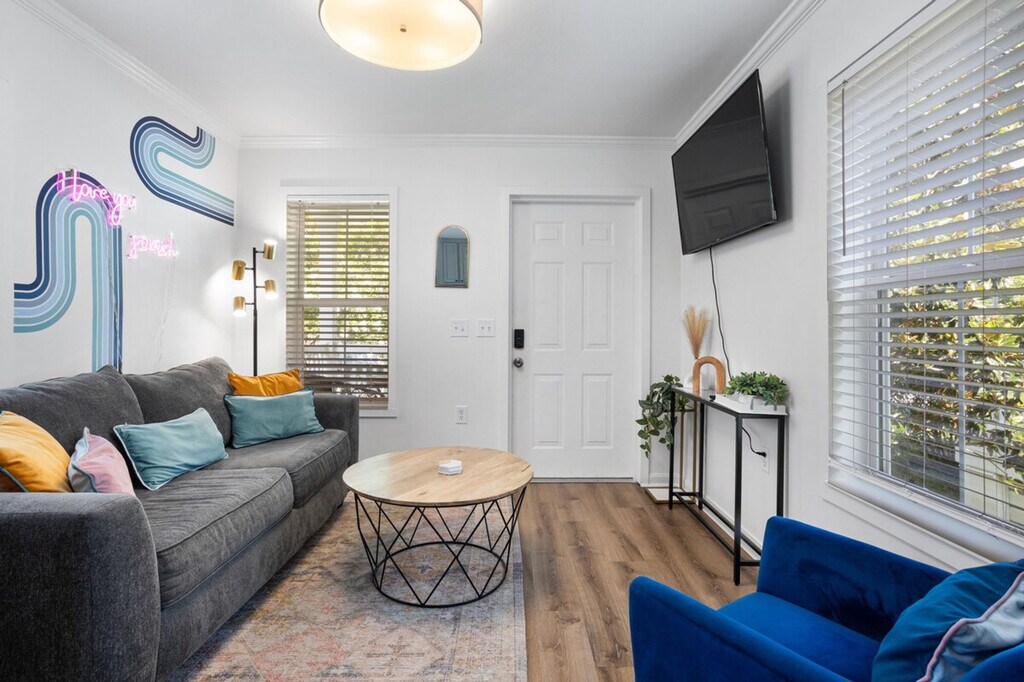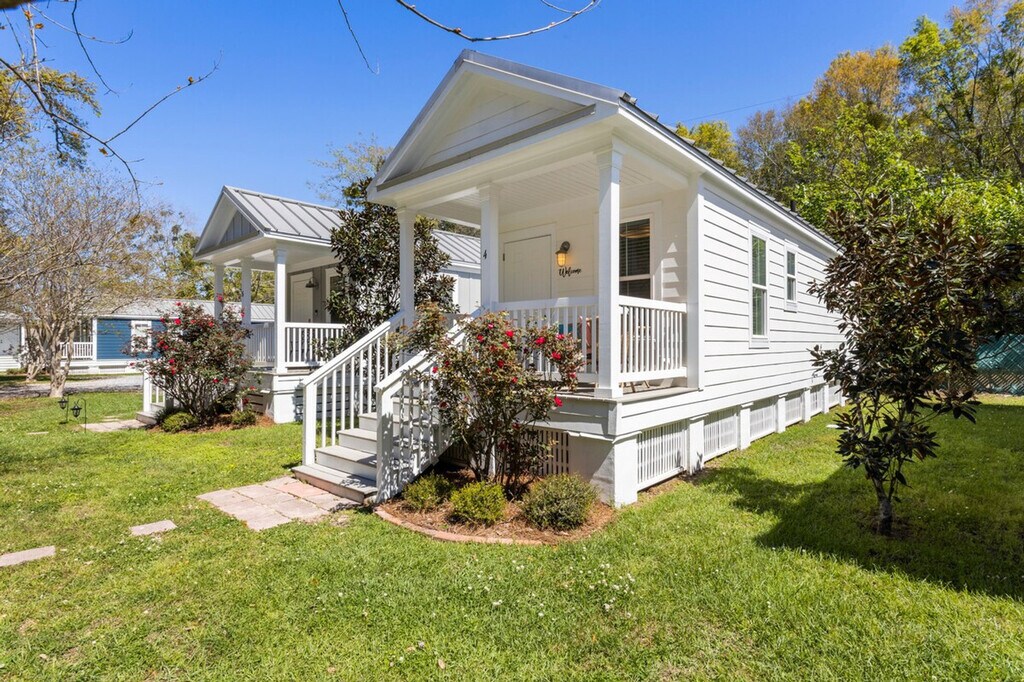 The advertised rate of $8,850/month is the lowest available price, based on a 30 day(s) stay with a move-in date of July 8, 2026. Rates vary depending on the duration of stay, season, and other parameters. For exact pricing and additional pricing components, please visit our website and enter your desired move-in and move-out dates. The rate is applicable when billed upfront; it can be higher if billed in multiple payments. Feel at home in this charming cottage in the heart of downtown Ocean Springs, perfect for a couple's getaway. This bright and inviting open-plan cottage features a full kitchen with stainless steel appliances, a coffee station, and vibrant teal cabinets. The living area includes a comfortable gray sofa that converts to a sleeper, a high-top dining table, and a smart TV. The cozy bedroom offers a comfortable queen-sized bed, a wall-mounted TV, and a closet with a stacked washer and dryer. The clean, all-white bathroom has a full shower-tub combination. A golf cart is included for a quick 3-minute trip to the beach. Walk to shops, galleries, and restaurants from this centrally located cottage. Experience the best of the coast from this vibrant location. This cottage is located adjacent to a popular local bar, the Juke Joint. On weekends, the bar often features live music that can play late into the night. To help minimize any potential noise, a sound machine has been provided in the bedroom. [SI]
