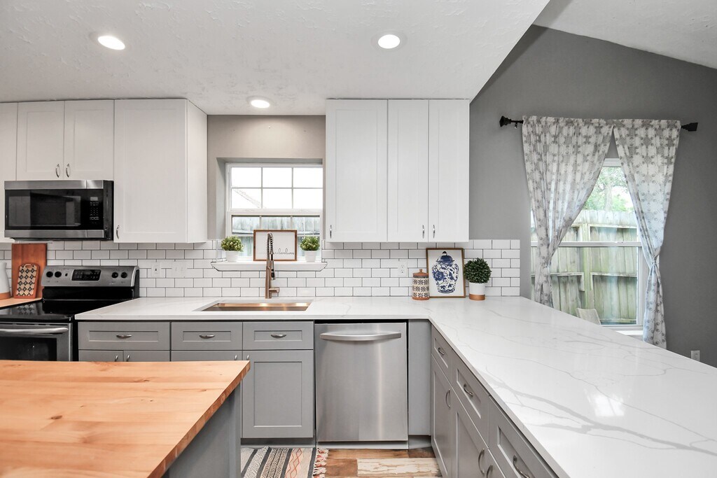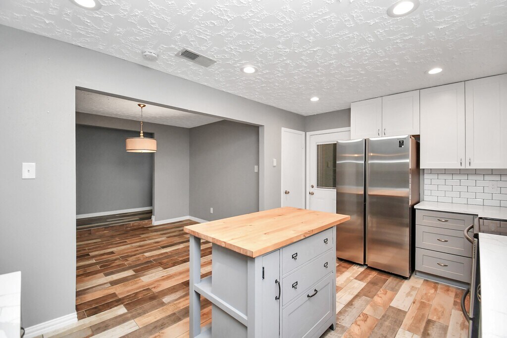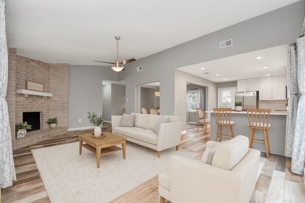 Florencia CabezaLocated on a quiet cul-de-sac in Williamsburg Hamlet, this move-in-ready 3-bedroom, 2-bath home blends modern updates with everyday comfort. The open living, dining, and kitchen layout creates a seamless flow that s perfect for entertaining or relaxing at home. The renovated kitchen is a true standout with quartz countertops, classic subway tile, bright white cabinetry, a center island, breakfast bar, and stainless-steel appliances refrigerator included. Enjoy no carpet anywhere in the home stylish wood-look tile in the main areas and wood-style flooring in all bedrooms for easy maintenance. The primary suite offers generous space and an updated en-suite bath. Out back, unwind under the covered patio surrounded by mature trees, or enjoy quick access to the nearby community pool. Zoned to Katy ISD with convenient access to I-10, Grand Parkway 99, shopping, and dining. Schedule your showing today!