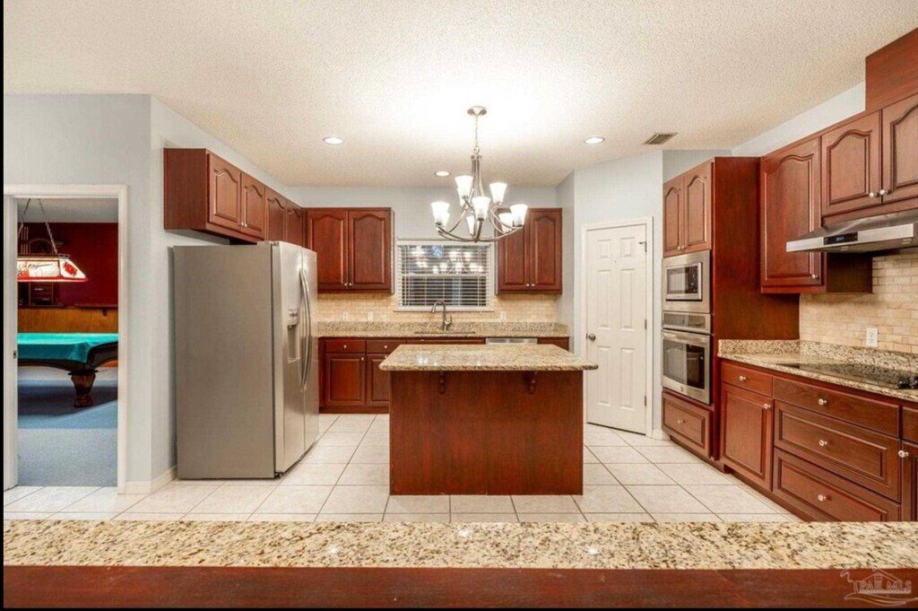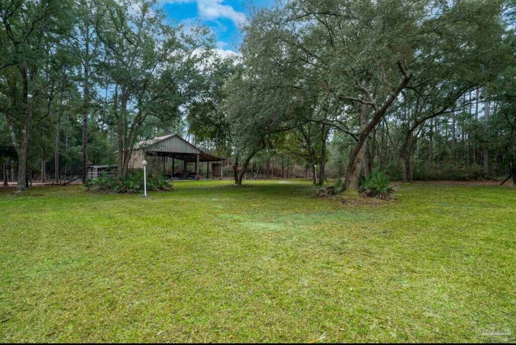 Discover 4 acres of true privacy right in the city, ideally positioned just 20 minutes from downtown Pensacola, minutes from the interstate, and only 30 minutes from the beach. Surrounded by beautiful mature trees, this estate offers seclusion, space, and freedom without sacrificing convenience. Inside, the home features a spacious, flexible layout perfect for multi-generational living. Enjoy a generous primary suite plus two additional en-suites/Mother-in-law suites, ideal for guests, extended family, or older teens who want their own space. Just off the kitchen is a large Great Room/Bonus Room, which the owners used as a Man Cave and Billiards Room. This versatile area functions perfectly as a Game Room, Media Room, Entertainment Lounge, Playroom, or Recreation Space, adding a tremendous amount of usable living space. The updated open kitchen includes granite countertops, modern appliances, and refreshed bathrooms with new sinks, lighting, and fixtures throughout. Stylish tile flooring runs through the entry and all wet areas, with laminate in the living spaces and carpeted bedrooms for added comfort. Step outside to your private backyard oasis. A covered porch overlooks the sparkling pool and expansive yard, perfect for relaxing, entertaining, or enjoying the peaceful surroundings. The property also features an enormous multi-bay pole barn equipped with electricity and water, and large enough to handle serious storage and recreational needs. This barn can comfortably accommodate a toy hauler, RV, and boat simultaneously, with additional space for tools, equipment, or even race cars—especially appealing with Five Flags Motor Speedway only 1/4 mile away. For daily use, the main 2-car garage provides exceptional functionality with oversized 10' doors, ideal for large or lifted vehicles. The garage is divided into two distinct sections: the front includes the two high-clearance vehicle bays, and the rear opens into a spacious 24' x 24' climate-controlled flex room previously used as a home gym and suitable for an office, hobby studio, workshop, or craft space. Optional Multi-Use Flex Space Available: There is a 24' x 24' climate-controlled flex space located behind the main garage that owners currently use for secured storage. This space can remain private or be made available to the tenant for use as a workshop, gym, office, studio, or storage area for an additional monthly fee. Details and pricing can be discussed during the application process. An RV hookup is conveniently located at the back of the main garage, making it easy for guests, traveling family members, or RV users to connect and stay on-site. Additional standout features include: Pool Maintenance Included Luxury chicken coop with fully enclosed run Ample space for boats, RVs, trailers, and outdoor toys Property extends approximately 50 yards beyond the back fence for additional usable land Solar panels dramatically reduce energy costs, increasing efficiency and savings All of this is located just minutes from Navy Federal Credit Union, with easy access to downtown, shopping, restaurants, and the Gulf Coast’s best beaches. This estate offers a rare blend of privacy, function, land, and lifestyle—a unique opportunity in Pensacola and an exceptional place to call home.