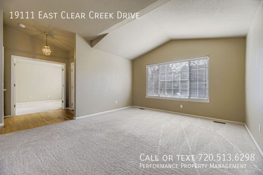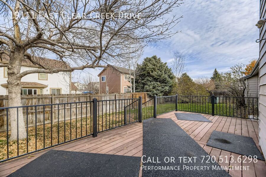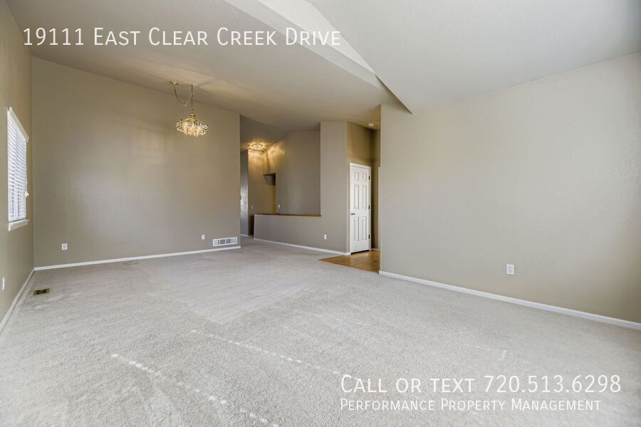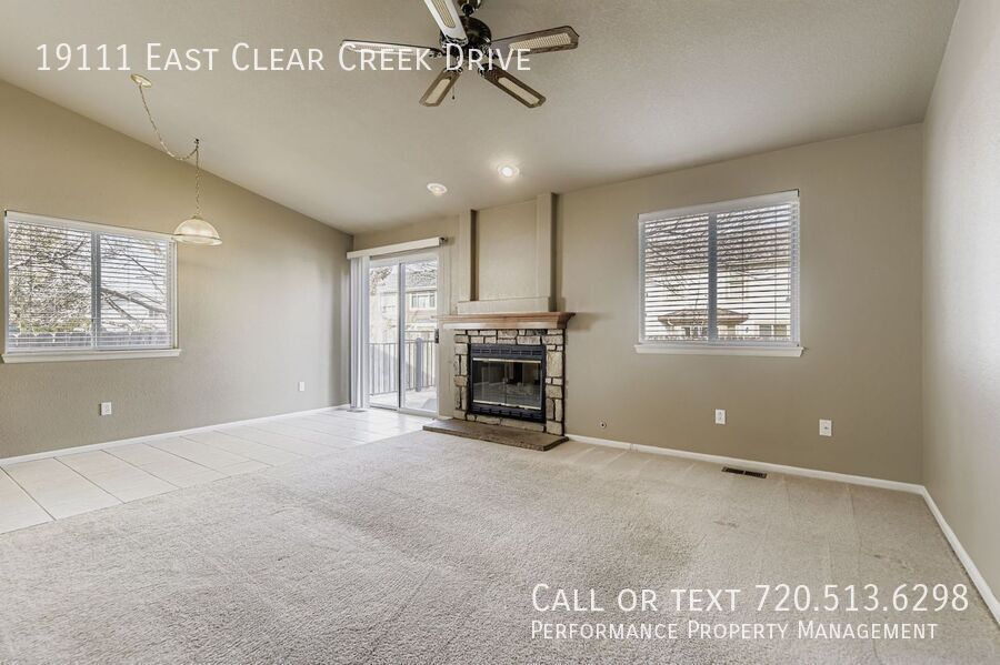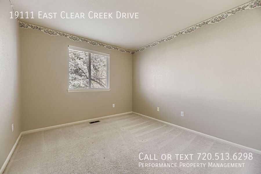 Welcome to 19111 East Clear Creek Drive, a delightful 3-bedroom, 2-bath home in the vibrant Parker community. The property features a spacious fenced-in backyard and a large deck—perfect for relaxing, entertaining, or enjoying Colorado’s sunny days. Inside, the home offers a functional layout with bright, comfortable living spaces that make everyday life easy and enjoyable. This neighborhood is all about lifestyle, with walking and biking trails right outside your door and the nearby community recreation center offering tennis and racquetball courts, a weight room, and a swimming pool. Just minutes from shopping, dining, and entertainment, this location combines convenience with a strong sense of community. -Security Deposit: Equal to one month's rent for qualified applications -Utilities: Tenant is responsible electric, gas, water, sewer and trash -Dogs accepted! $300 refundable pet deposit and $35 monthly pet rent ---must be older than 1 year and house-trained -24 Hour Emergency Maintenance -Renter's Insurance: Required at move-in with a minimum of $100,000 coverage -Application fee: $55 -12-month lease terms Call to schedule a tour @ Information in advertising is deemed reliable but not guaranteed. The prospective tenant has the right to provide to the landlord a portable screening report, as defined in Section 38-12-902(2.5), Colorado Revised Statutes; and If the prospective tenant provides the landlord with a portable tenant screening report, the landlord is prohibited from: Charging the prospective tenant a rental application fee; or Charging the prospective tenant a fee for the landlord to access or use the portal tenant screening report. Bike Trails Community Recreation Center Fenced In Backyard Tenants Pay All Utilities