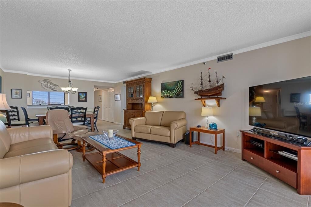 Penthouse in Vista Bay Condos of Indian Shores with incredible water views as far as the eye can see. Water views are from almost every room of the Intracoastal waterway,and there are partial Gulf views from the walkway. Dock/lift available for a large vessel if needed and with owner approval. Open floor plan with neutral colors and upscale decor. 2 Bedroom/2 Bath,1,360 Sq. Ft. turn-key/fully furnished. A boater's and fisherman’s dream location. LR/DR combo with high end furnishings. The LR sliders will lead you out to the large 30' balcony. The Kitchen is large and has beautiful cherry wood cabinets and all stainless appliances and a dining area with a nice water view. Just off the kitchen is the laundry closet with a full size washer and dryer. The Master bedroom has a king-size bed,a flat screen TV,a very large walk-in closet and the Master BR also allows access to the 30' balcony area. How beautiful it will be to relax in the morning or in the evening with this water view from your bedside. The Guest BR has a full set of twin beds,TV and lovely furnishings. The Master Bath offers a large walk-in shower,dual sinks and a privacy restroom. The Guest Bath is a nice size and has a tub/shower combo. There is also a storage area available to you on the 6th floor. This active community offers a large,heated pool with a covered picnic area,a deck lounge area with lots of lounge chairs,tennis courts,shuffleboard,pickleball,a nice fishing dock and the grilling area is near the waterside. There is also an outdoor shower and restrooms. Condo does have an under building parking space and a tandem parking space as well. The pristine,sandy beach is just across the street,the beach trolley stops are close by too if you want to venture north to Clearwater Beach or south to the St. Pete Beaches. Lots of local parks,bike and walking paths nearby and close to some of the areas,nicest restaurants and shops. You simply would never want to leave this condo in paradise! SHORT TERM 3 Mth. Minimum. MLS# U8192233