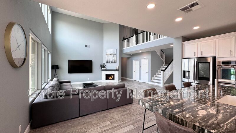 Welcome to this beautifully remodeled 4-bedroom, 2.5-bath home offering 2,732 sq ft of open-concept living with panoramic city and mountain views. Step inside to an expansive, light-filled living space featuring soaring 18-foot ceilings, elegant tile flooring, recessed lighting, a modern fireplace, and double-pane windows with motorized solar shades—designed for both comfort and efficiency. The upgraded kitchen is a chef’s dream, showcasing granite countertops, stainless-steel appliances, a farmhouse sink, abundant cabinetry, and a large center island with bar seating. A separate butler’s pantry provides additional storage and keeps countertops clutter-free. Adjacent to the kitchen is a formal dining room, perfect for entertaining. The spacious primary suite is conveniently located on the first floor and features two walk-in closets and a luxurious ensuite bathroom with a soaking jacuzzi tub, walk-in shower, and dual vanities. Secondary bedrooms are generously sized and thoughtfully laid out. This energy-efficient home includes newly installed 7.2 kW Panasonic solar panels and a high-efficiency HVAC system, helping reduce utility costs. Additional highlights include a 3-car attached garage, ample driveway parking, and a 240V Tesla Wall Charger. The backyard is a true entertainer’s retreat, complete with a built-in Blackstone griddle, mini fridge, sink, large covered patio, and low-maintenance synthetic turf—all set against incredible, unobstructed views of the valley and surrounding mountains. Located in a quiet, desirable neighborhood with excellent curb appeal, friendly neighbors, and access to top-rated schools. Close to parks, hiking trails, shopping, dining, and local markets—this home truly has it all.