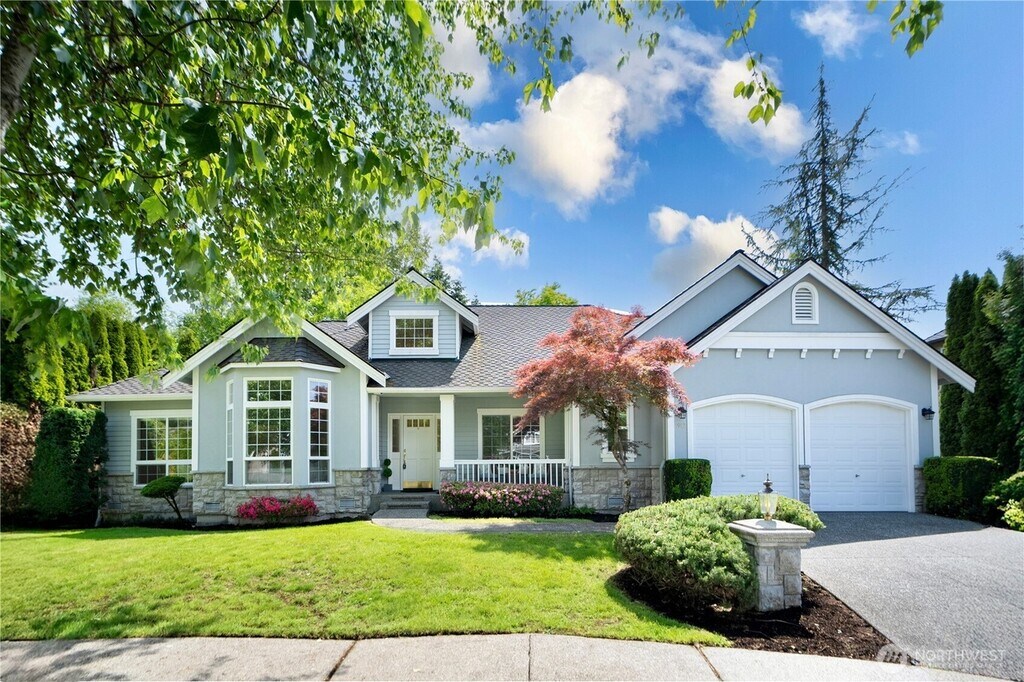 Exquisite Custom Rambler in Prime Bothell Location. Nestled on a quiet cul-de-sac in one of Bothell’s top neighborhoods and the Northshore School District, this beautifully designed home features a charming Craftsman-style front porch, vaulted ceilings, hardwood floors, and formal living/dining rooms with bay window seating. The spacious kitchen includes Corian counters, maple cabinetry with under-cabinet lighting, walk-in pantry, and island with bar seating and convection oven-ideal for entertaining. Cozy family room with gas fireplace and custom maple surround. Main-floor primary suite offers a jetted tub and walk-in closet. Fenced backyard backs to a serene greenbelt. Quick access to I-405, downtown Bothell, and private neighborhood park. No pets and no smoke. Security deposit + first & last month's rent due at signing. Application, administration and additional fees may apply.