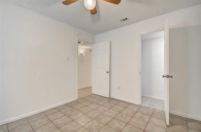 Move-in ready first-floor, 2 bedroom, 1½ bath unit in a well-maintained fourplex property. This clean, low-maintenance apartment features an updated galley kitchen with newer cabinetry, attractive countertops, and newer black appliances, including a refrigerator and a quiet Bosch dishwasher. The laundry room accommodates a full-size stackable washer and dryer. Desirable layout with good natural light, ceramic tile flooring throughout, ceiling fans, fresh interior paint, covered front porch, and assigned parking. The primary bedroom includes a private half bath with an modern vanity and improved fixtures. Conveniently located within walking distance to Sandy Oaks Park and just minutes from Tom Hall Memorial Field Sports Facility, Farmers Market, Haltom Theater, and Haltom City Park with 9 acres of walking trails. Easy access to major highways and just minutes from Downtown Fort Worth.