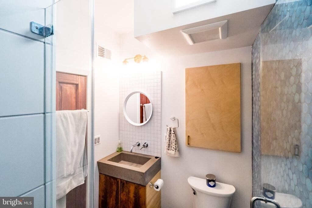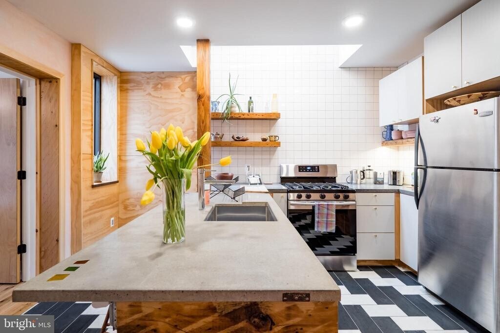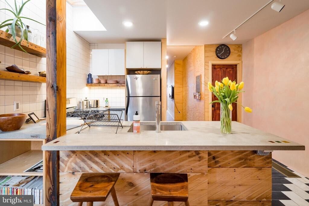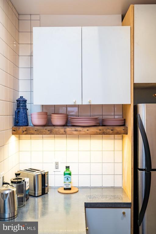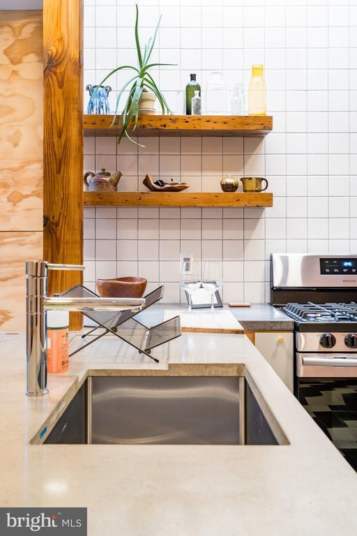 Beautiful Artisan 1 Bedroom Apartment (1st Floor) built/designed by Craftwork Design. Enter into lovely living area with custom woodwork, great colors, brick, and nice light. Kitchen is a knock-out with custom tile, handmade concrete counters, wrap around island, gorgeous reclaimed wood shelves, skylight, dishwasher, disposal and gas cooking. Rear bedroom is spacious and peaceful, with a real closet, great light, and huge sliding door out to private rear garden. Bathroom is another showcase of custom tile, colors, woodwork and lighting. This unit has exclusive use of the basement with full laundry and storage space. This apartment is easy to show and a pleasure to walkthrough. **Thanks**