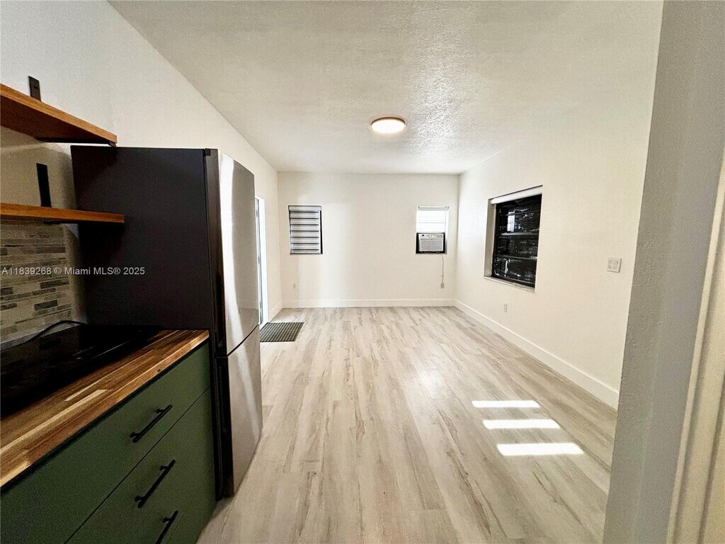 This beautifully designed efficiency offers a private entrance, spacious front porch, and a thoughtfully laid-out interior. The kitchen comes fully equipped with stainless steel refrigerator, microwave, and mini stovetop. Enjoy added convenience with an in-unit washer/dryer and a private bathroom featuring double sinks and a dual-head shower. Located in the quiet, residential neighborhood of South Miami Heights, close to shopping, dining, and major roadways. Ideal for those seeking privacy, comfort, and convenience.