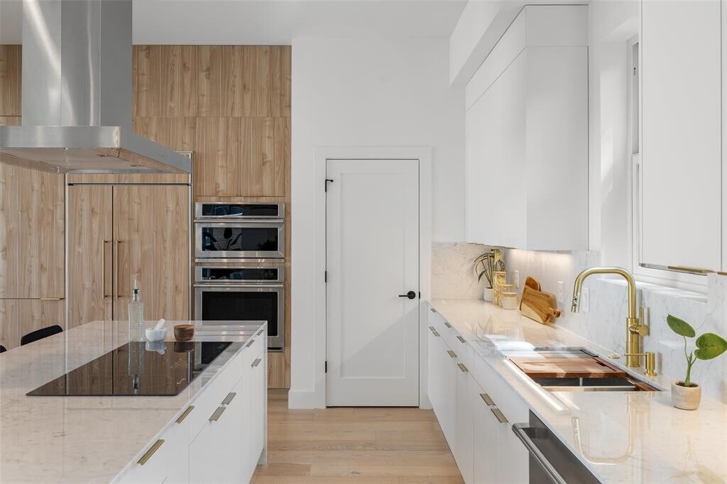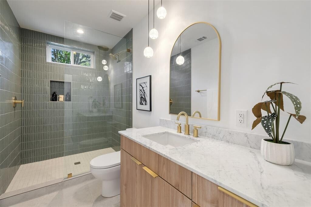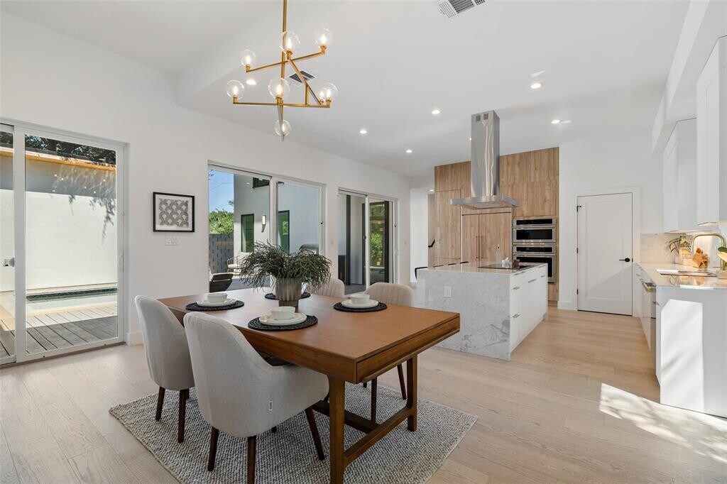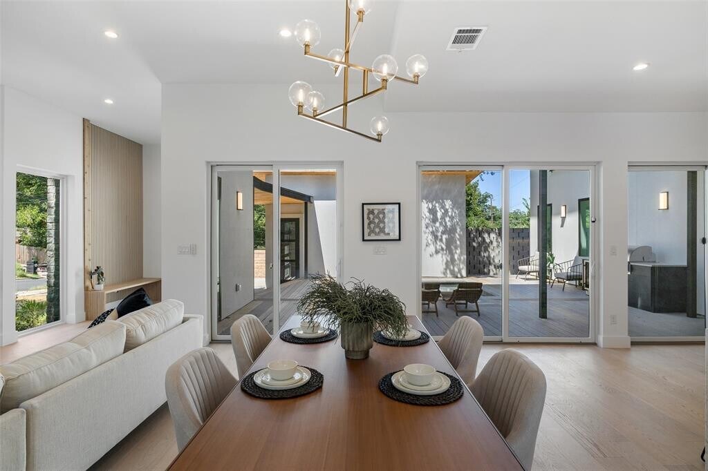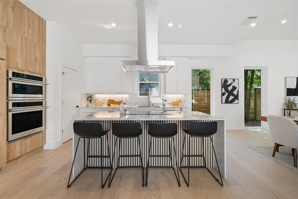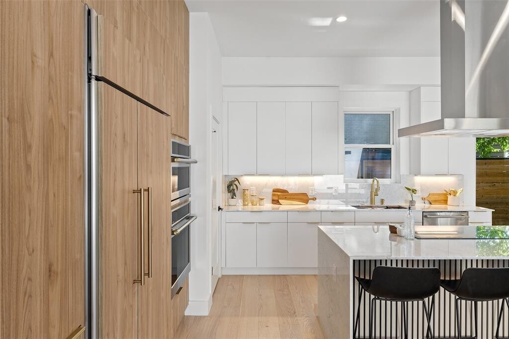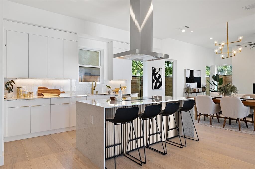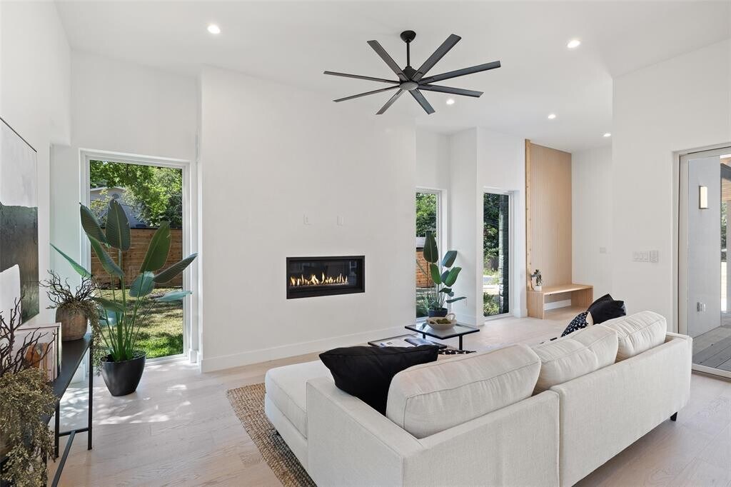 A contemporary compound in Austin’s sought-after Travis Heights neighborhood, this home offers a truly unique and luxurious living experience. Private patios & balconies create personal retreats for everyone in the home while a stunning central courtyard offers a pristine pool, outdoor, kitchen, and ample patio space for al fresco dining, entertaining, and relaxing. The layout effortlessly blends indoor and outdoor living, making this home not just a place to live but a private oasis where you can unwind, entertain, and enjoy the best that modern luxury has to offer. A breezeway leads from the 1-car garage to the front door. Inside, the open floor plan features thoughtfully crafted details including wood accents, wide-plank wood flooring, and pendant lighting. Large windows and sliding glass doors bathe the space in natural light while a modern fireplace warms the living room. The kitchen is a culinary haven boasting a built-in cooktop & oven, an integrated refrigerator, a walk-in pantry, and a center island with a waterfall quartz countertop. A bedroom on the main floor is perfect for guests, featuring a private patio and an ensuite bath with a double vanity and a California walk-in closet and large shower. Upstairs, the primary bedroom is a luxurious retreat. Sliding doors lead to a large private balcony, ideal for enjoying your morning coffee. The spa-like ensuite bath features a double vanity and walk-in shower while the California walk-in closet offers ample space for your belongings. The two additional bedrooms upstairs are generously sized and share a spacious bathroom. Fully fenced in & gated, the backyard and front yard offer lush landscaping and a private and tranquil space to garden, relax, and play. Beyond your front door, a mix of eclectic boutiques, designer brands, and some of Austin’s best restaurants converge on Austin’s beloved South Congress Avenue.