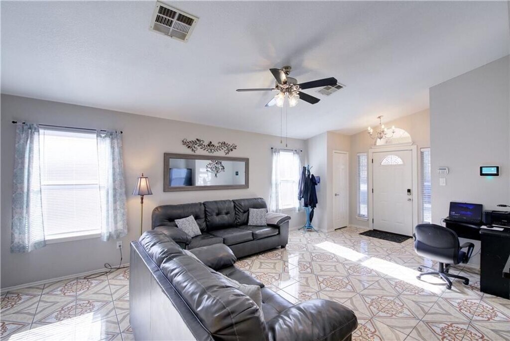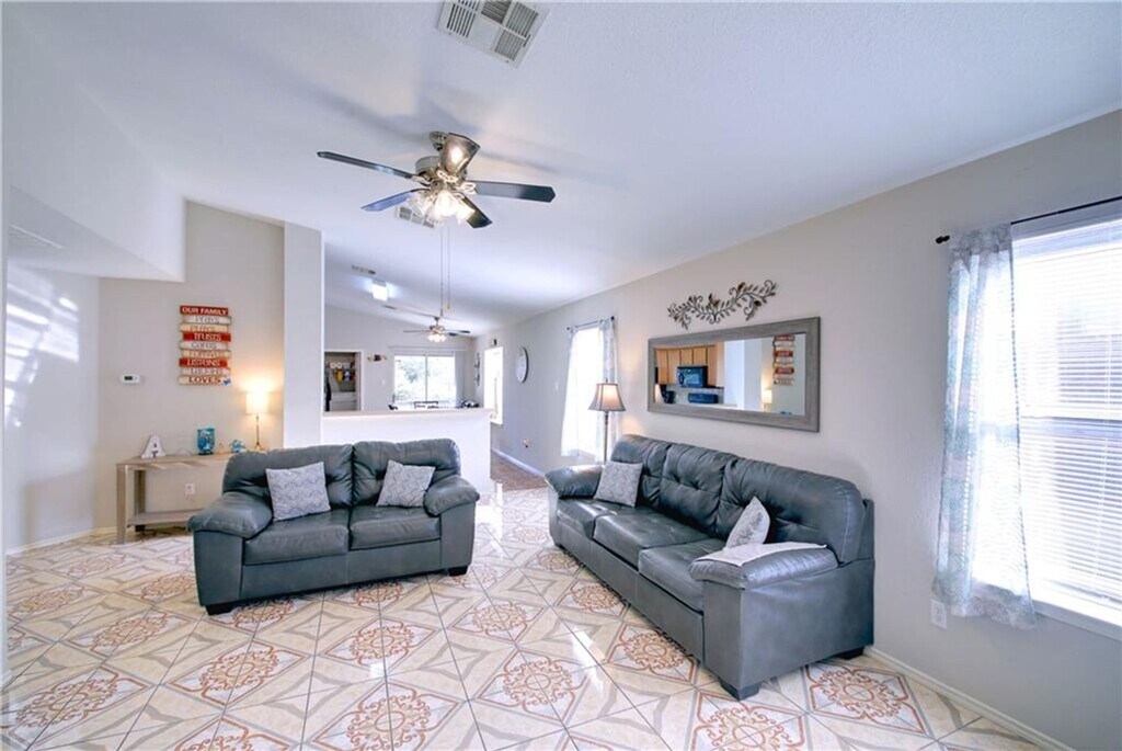 Does NOT come with washer or dryer. New Refrigerator, Very clean well maintained one-story home. Large kitchen with eat-in dining open to the family room. MIL plan with the master with a walk-in closet and full bath. Nice size secondary bedrooms. Lots of natural light. Nice shaded front yard with covered front porch. Back yard great for entertaining with covered patio and privacy fence. A very desirable location 20 minutes downtown.