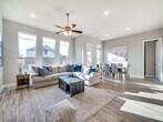 Attractive East facing one level home in the desired neighborhood of Glen Crossing. Great open floor plan with split bedrooms for that desired privacy. Luxury vinyl flooring in kitchen, living areas and hallways. Window coverings in living, dining and primary bedroom have remote controlled shades. Even the pickiest chef will love this gourmet kitchen which overlooks large family living and dining. Kitchen equipped with large island, gas range, upgraded dishwasher, refrigerator and beautiful granite counters. Solid surfaces with undermount sinks in both bathrooms. Primary bath has large walk-in shower and roomy closet. Study is centrally located behind double French doors and could be children's play space or craft room. Neighborhood with lovely hike and bike trails, ponds, swimming pool with private changing rooms and outdoor kitchen and dog park. Sizable backyard space with large patio and attractive wood fencing. Included in rent:washer & dryer, refrigerator and lawn maintenance.
