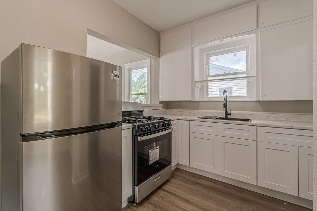 Welcome home! This freshly remodeled home features brand new appliances, new flooring, fresh paint, new and updated bathroom, storage, and more! This beautiful home has mature trees, oversized back yard with covered porch and storage shed. Featuring original window casings with a modern touch you will be delighted to make this your next home.