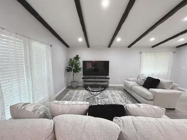 Available now! This beautifully updated 4-bedroom, 2-bath home features an open-concept layout with high ceilings and a spacious kitchen. Updated throughout, the home offers modern comfort and style. Enjoy outdoor living with a large private pool, and appreciate the convenient location close to parks, shopping centers, and within walking distance to schools. Fully furnished option available for an additional $300 per month. Pool service for $250 per month.