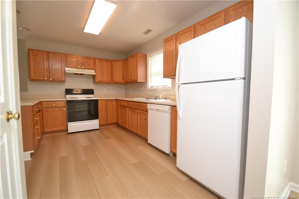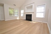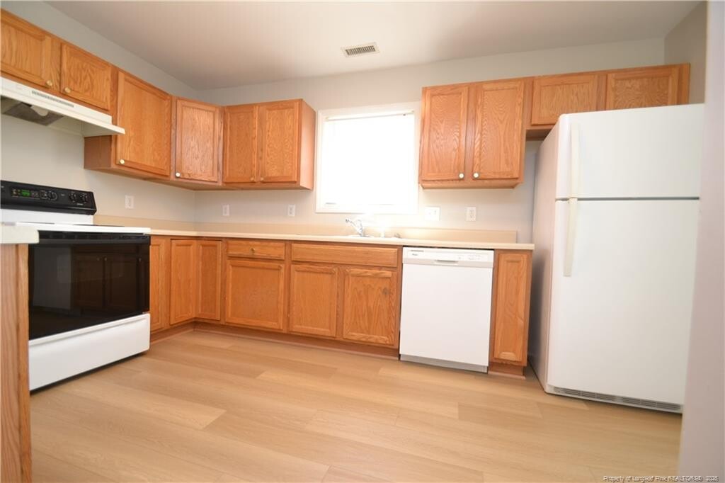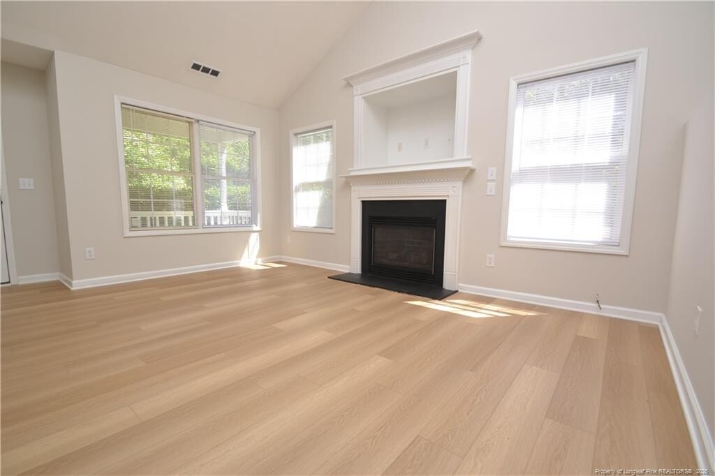 This affordable and immaculate home is tucked away in a phenomenal Fuquay Varina neighborhood and ready for immediate occupancy. Park in your private driveway where you'll notice this home's lovely curb appeal as well as its covered front porch. Once inside, you'll find yourself in a dramatic, open-concept floorplan anchored by a sprawling family room showcasing a vaulted ceiling, multiple picture windows, an exposed staircase and a cozy gas log fireplace with a TV niche. You'll also appreciate the modern, neutral paint as well as the beautiful luxury plank flooring that graces the entire first level. This flooring is as attractive as it is durable and you'll love how easy it is to maintain! The family room adjoins a perfectly-proportioned dining area that also boasts a vaulted ceiling and luxury plank floors as well as double windows that allow this space to be filled with beautiful natural light. Around the corner you'll next enter an attractive kitchen that includes maple upper and lower cabinetry as well as a new LED light fixture, ample counter space, a breakfast bar, pantry and a stainless-steel double bowl sink with a picture window above. Next to the kitchen is a very spacious breakfast room that ensures the chef will never be left alone during meal prep. Here, you'll also enjoy the easy access to the private backyard as well as the built-in desk with a set of additional upper cabinetry; this space is perfect for home schooling, a home office, etc. Before heading upstairs, be sure to visit the spacious laundry room as well as the attached 2 car garage with direct interior access. On the 2nd floor, you'll find all three bedrooms. The primary bedroom measures a generous 15.5x11.5 and its vaulted ceiling accentuates the scale of the room. Three windows also ensure the space will enjoy natural light. An expansive walk-in closet as well as an en-suite bathroom that includes double sinks and a tub/shower rounds-out the primary bedroom experience. Bedrooms #2 and #3 are both generously proportioned and offer excellent closet space (#3 even has a walk-in closet). They each enjoy easy access to a full hall bathroom.