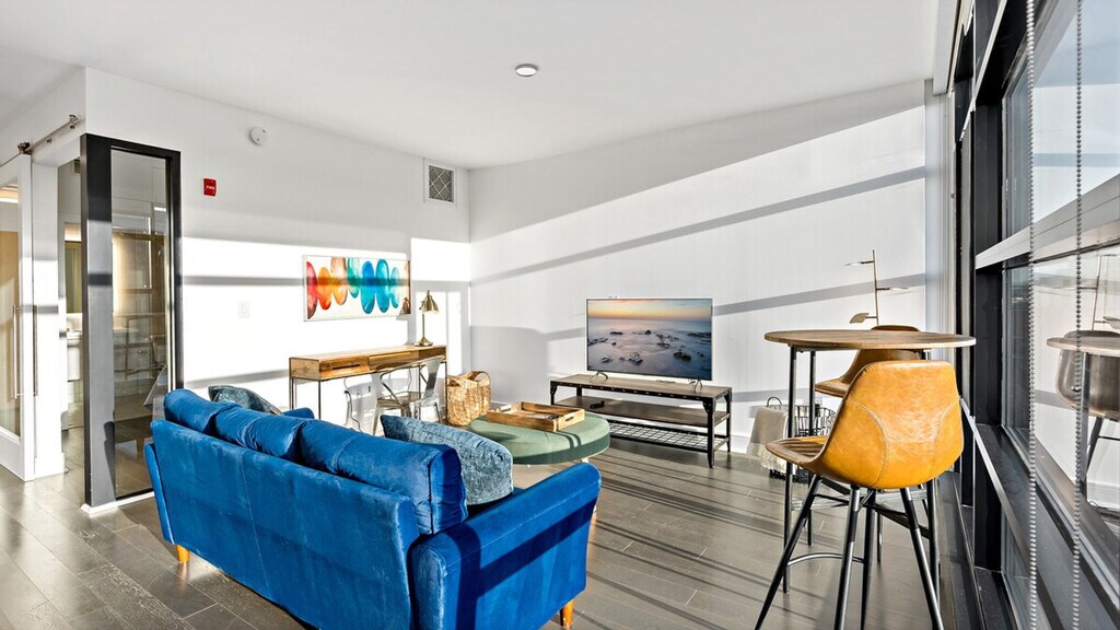 Feel at home in this 1-bedroom apartment in the heart of Washington's premier downtown residences. This sunny 1-bedroom apartment offers stunning views. The open-plan living area is filled with natural light and features stylish furnishings and a fully equipped modern kitchen. Parking is available in the garage for an extra daily/monthly fee and must be arranged in advance. Pets are welcome for an extra daily/monthly fee; please inquire before booking. Experience excitement at every turn with shopping, dining, and entertainment at your doorstep. This apartment is a minute's walk to the Metro, Wholefoods, and many restaurants. Enjoy the vibrant energy of Shaw, with its eclectic mix of dining, shopping, and entertainment just steps from your door. This is a busy street on the weekends. Shaw is a vibrant, upcoming hotspot for Washingtonians, which includes many restaurants, bars, and nightlife right outside your doorstep. [SI]
