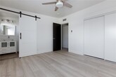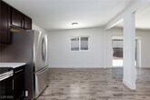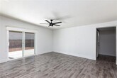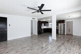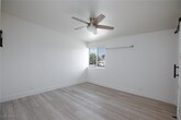 This beautifully remodeled mid century modern single story home offers stylish upgrades and no HOA. Featuring four bedrooms and two full bathrooms, plus a spacious front room that can serve as a large fifth bedroom or additional living area. Enjoy new dual pane vinyl windows, no carpet, and plank style tile and wood laminate flooring throughout. The home showcases fresh two tone paint with modern baseboards, an upgraded kitchen with custom cabinets, quartz countertops, and stainless steel appliances. The property includes an easy maintenance backyard, huge yard and plenty of space for outdoor enjoyment. Move in ready with timeless charm and modern comfort — a perfect blend of character and convenience.