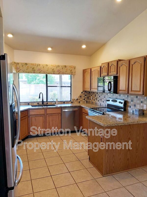 Beautifully updated home on a large lot with tons of upgrades. Located in the highly rated Kyrene school district. The eat-in kitchen features granite countertops and sink, custom tile backsplash, stainless and black appliances, and bay windows in the eating area and in the living room. Spacious master suite has an arcadia door to the backyard. Master bath has a Jacuzzi tub and separate shower. Sit out on the full length covered patio and enjoy the beautiful yard with citrus trees. Built-in cabinets in the two car garage allow for plenty of extra storage. Radiant barrier in the attic helps to control energy costs. Central vacuum in the house and garage add an extra level of convenience. Put your application in today, this one won't last long! ** Pets considered under certain circumstances and with property approval only** *BEWARE OF SCAMS! We do not list our homes on Craigslist or Facebook Marketplace. Please get in touch with Stratton Vantage Property Management to confirm availability and rent price* MOVE-IN COSTS Security Deposit: 1.25x–1.5x monthly rent (75% may be refundable) First Month’s Rent + 4.4% admin fee + $49.95 Resident Benefits Package setup fee $225 lease preparation fee *Pets: If applicable, $250 non-refundable pet fee per pet + first month’s pet rent ($60–$80 per pet, includes $30 pet admin fee). Some breed restrictions apply. Does not apply to Assistive Animals MONTHLY CHARGES Rent + 4.4% admin fee $49.95 Resident Benefits Package (includes renters’ insurance, air filter delivery, credit reporting, rewards program, and more) *Pets: If applicable, $60–$80 pet rent per pet (includes $30 pet admin fee). Does not apply to Assistive Animals VIEWING INSTRUCTIONS Call (FOUR EIGHT ZERO FIVE FIVE THREE EIGHT ZERO NINE FOUR) to schedule a self-guided tour. IMPORTANT Before applying, please visit to review rental qualifications and legal disclosures. ADDITIONAL DISCLOSURES Stratton Vantage Property Management is an Arizona LLC (dba of Brewer & Stratton Property Management LLC) 12-month lease minimum; longer terms may be negotiable. We follow the Fair Housing Act and do not discriminate based on race, color, religion, sex, handicap, familial status, or national origin. All info is deemed reliable but not guaranteed. We are not responsible for any errors or omissions in this listing. Amenities: fridge, washer, dishwasher, microwave, dryer, granite counters, range, oven